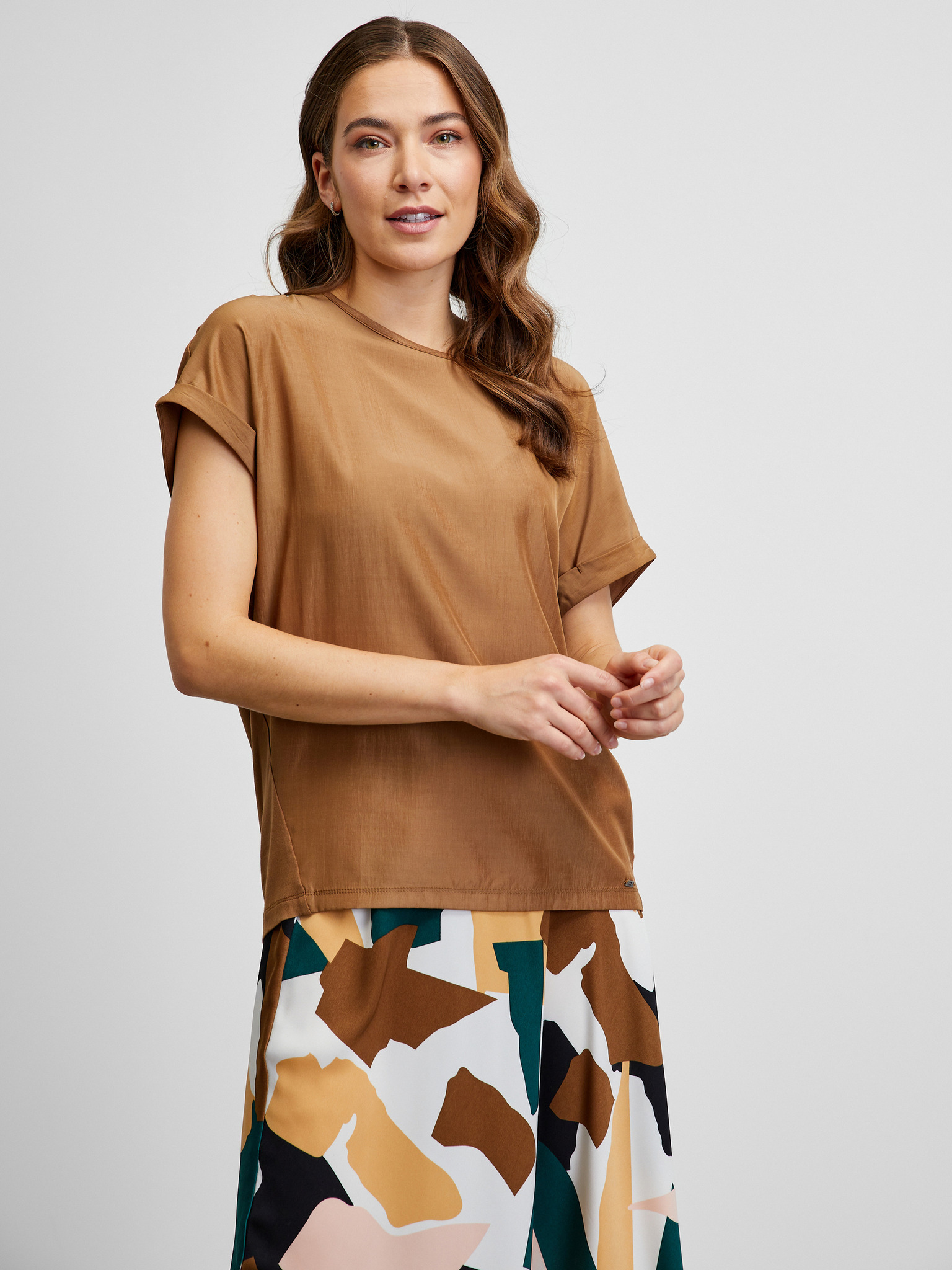 Ženska smeđa majica s printom