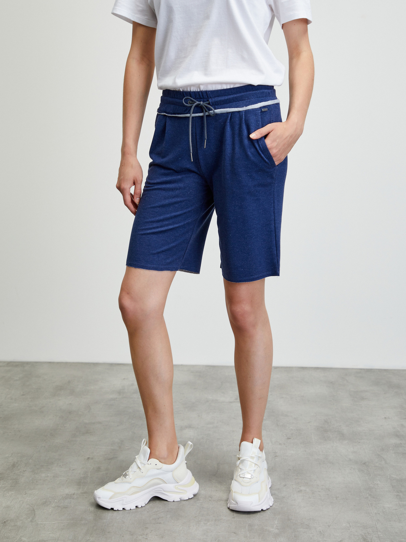 Tamnoplave ženske lanene kratke hlače s kopčom ZOOT.lab Paulina