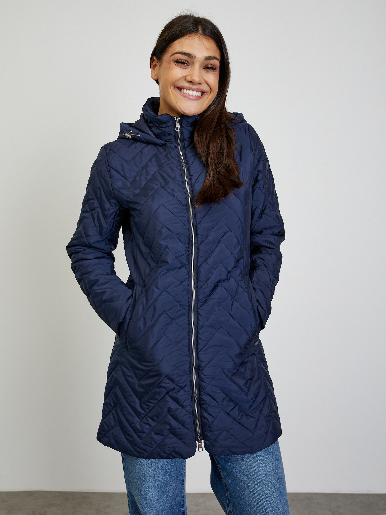 Tamnoplavi ženski lagani prošiveni kaput ORSAY