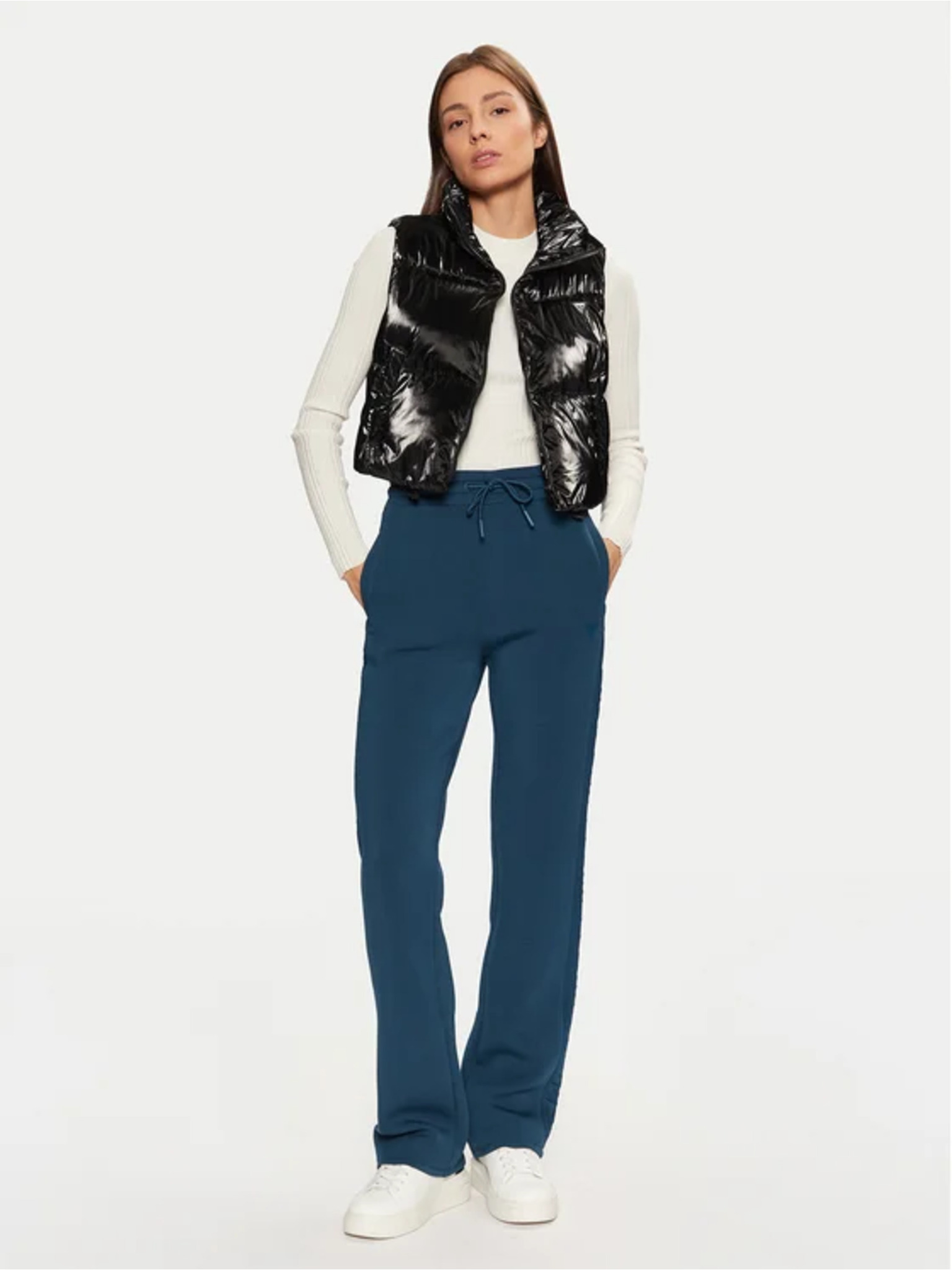 Ženski crni pernati prsluk Guess jeans