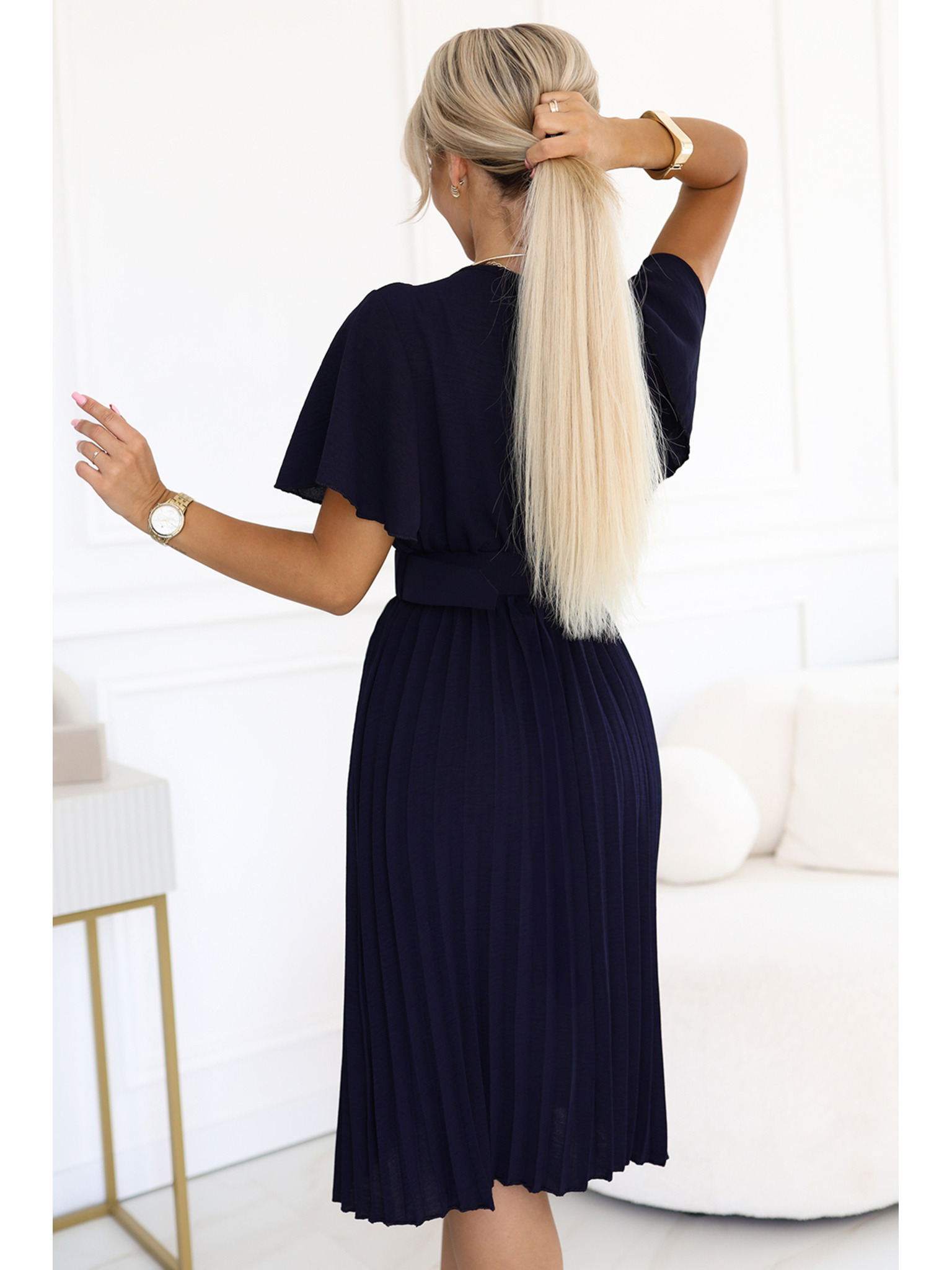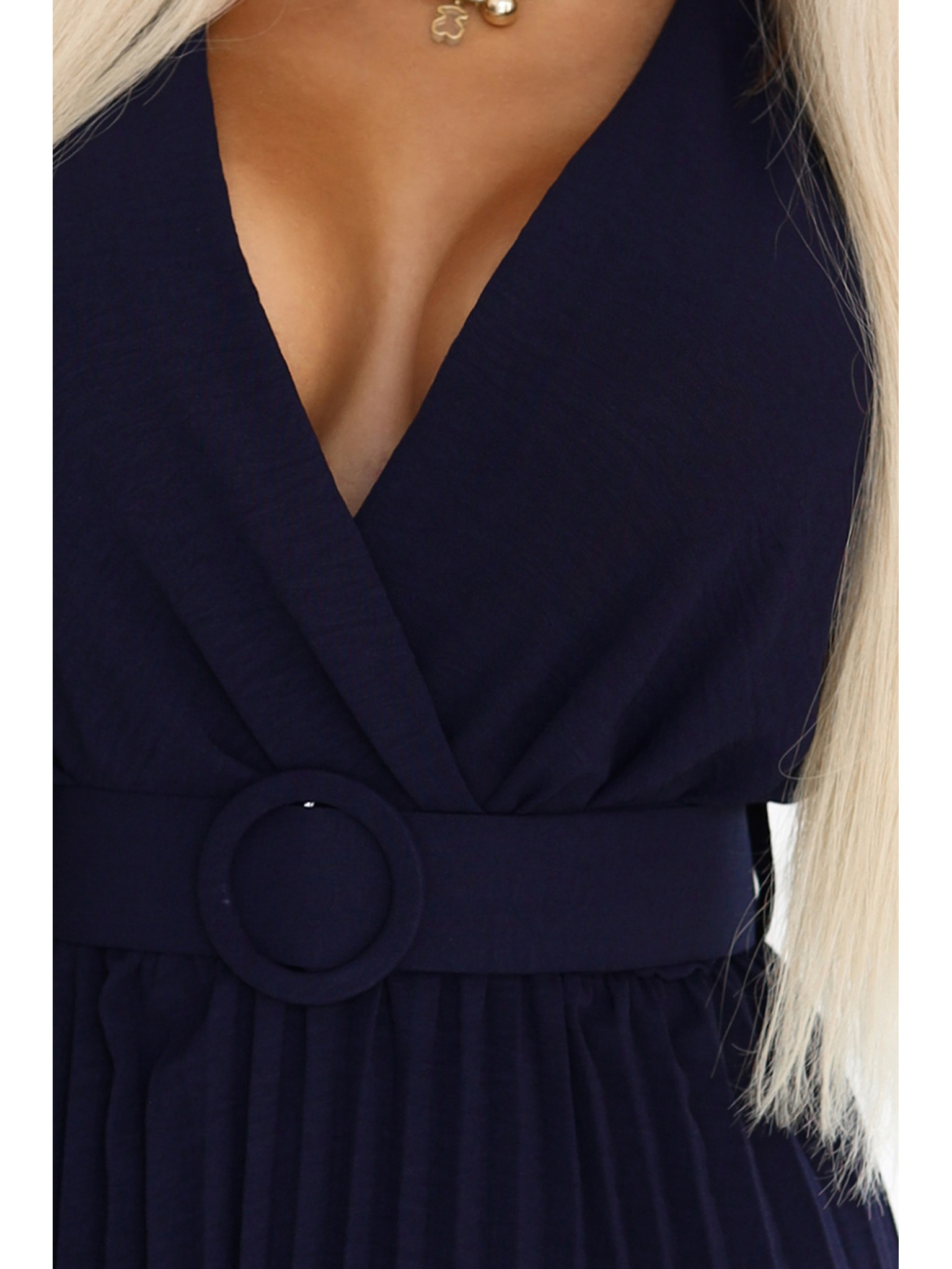 Nabrane midi haljine s preklopnim izrezom i širokim pojasom