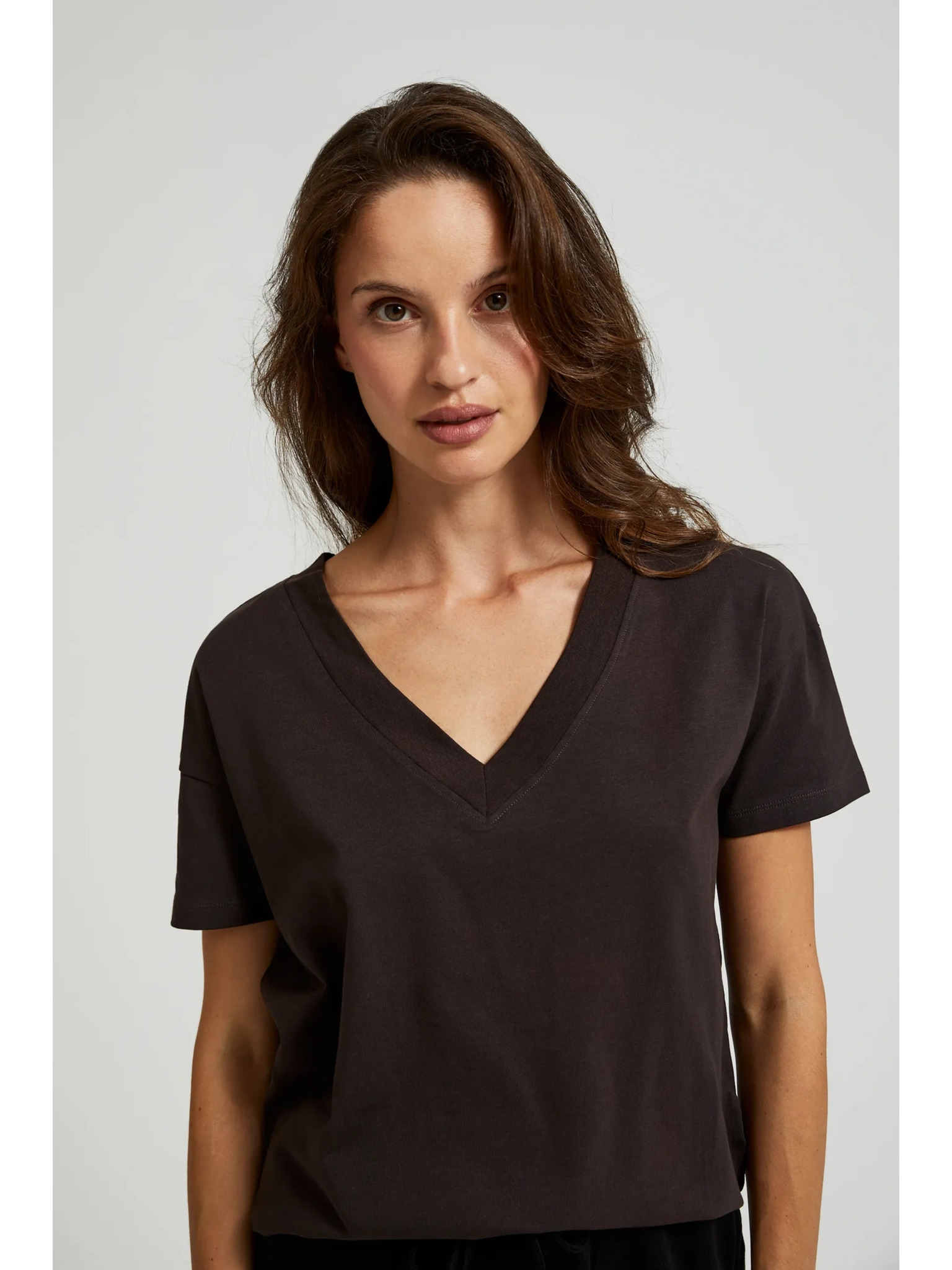 Ženska majica s džepom Moodo – tamnosmeđa