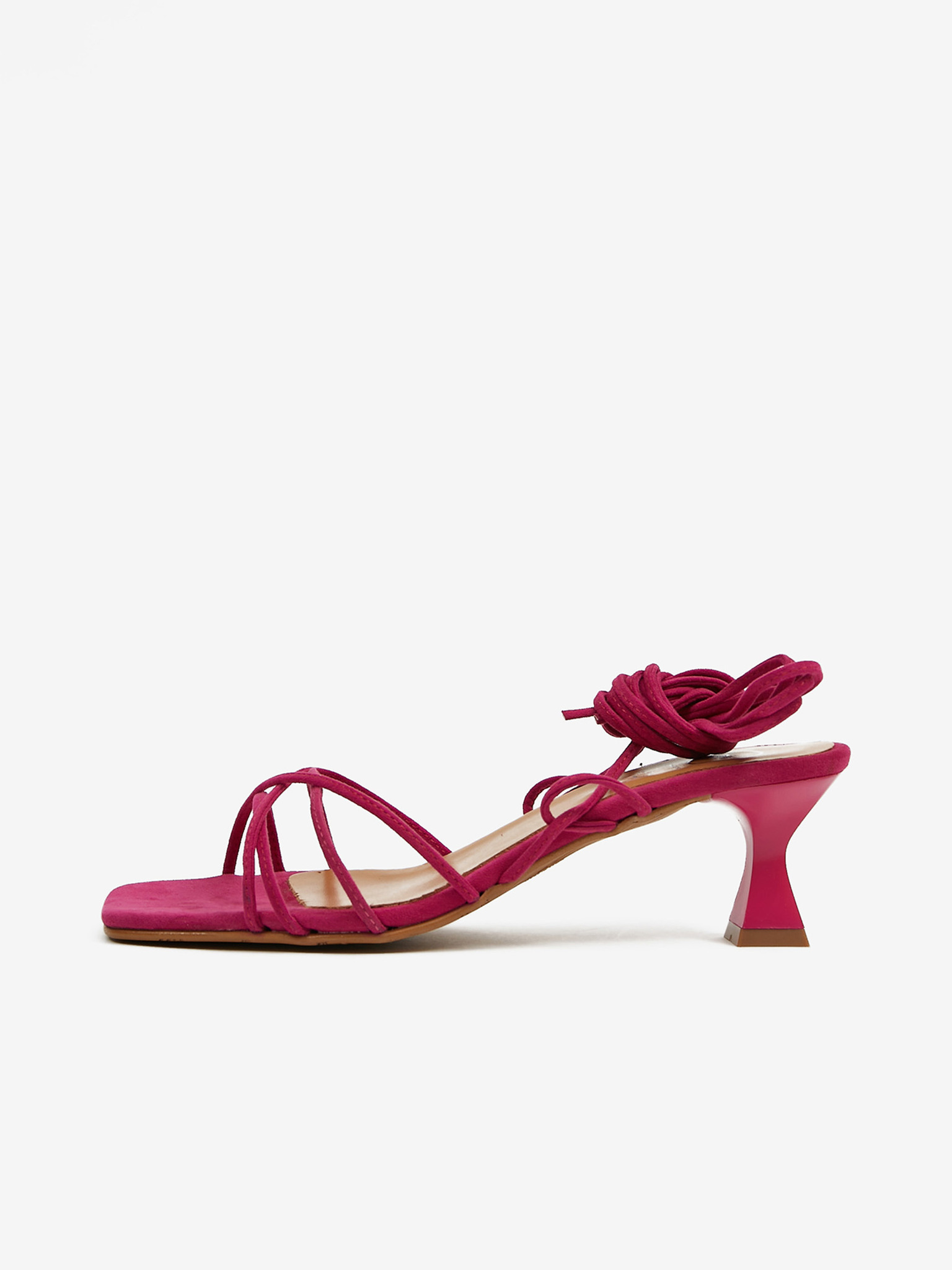 Tamnoružičaste ženske sandale na vezanje u završnici od brušene kože na OJJU peti