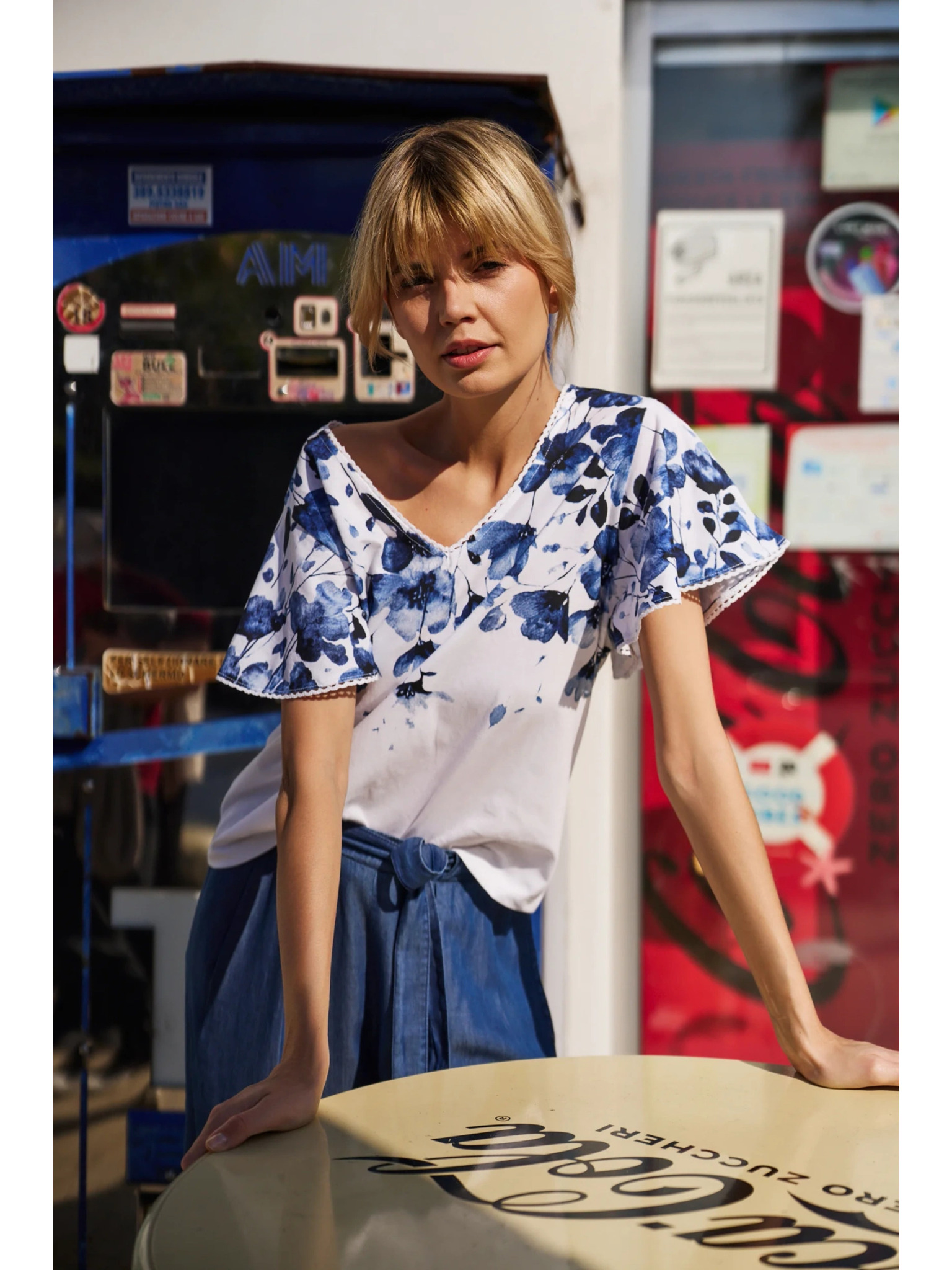 Bijela bluza s plavim cvjetovima
