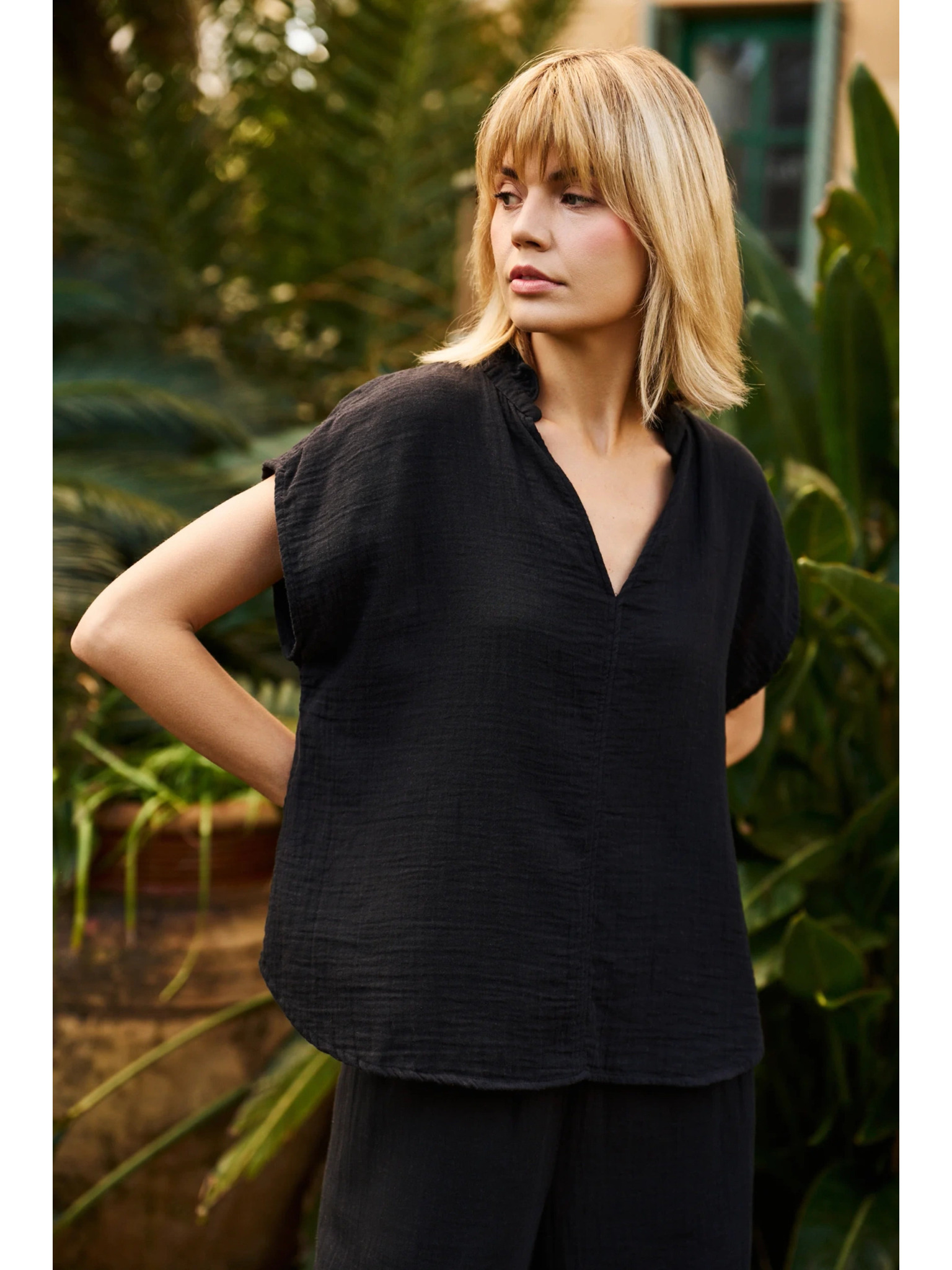 Crni top s kontrastnim rubom Moodo