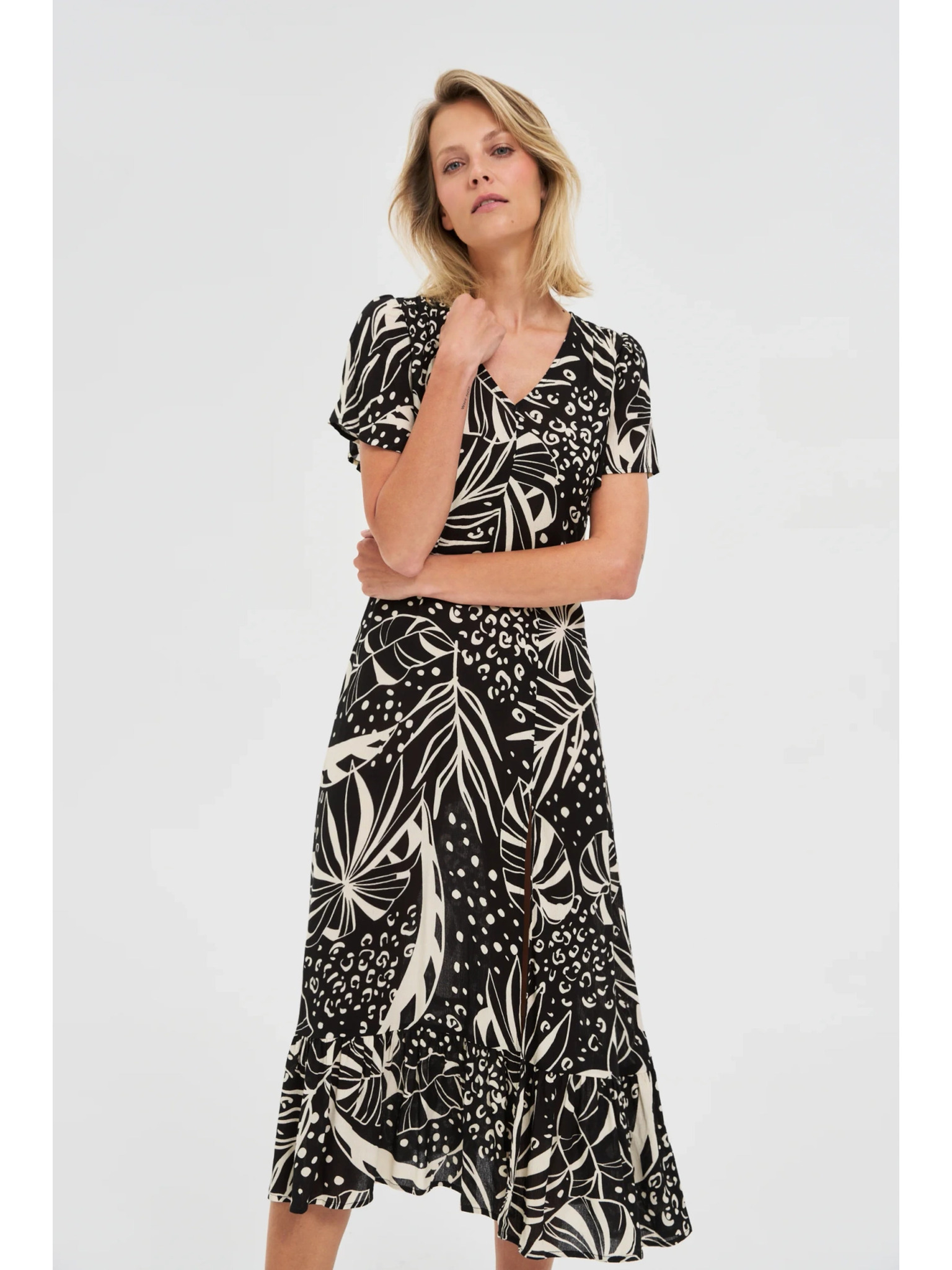 Bijelo-crna ženska midi haljina s uzorkom ZOOT.lab Nichel