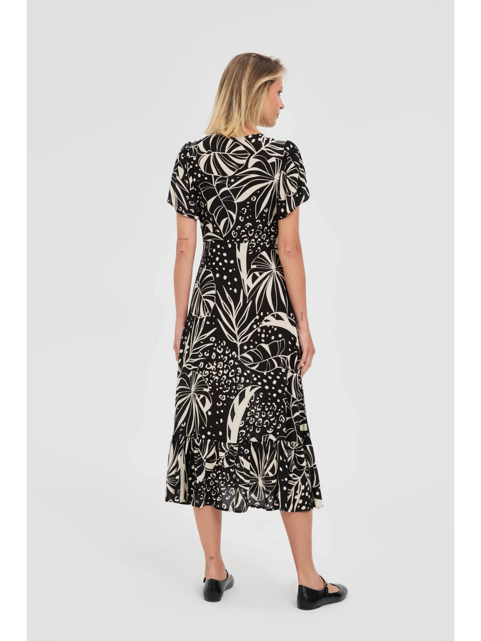 Duga haljina s volanima - crna + šareno cvijeće Numoco