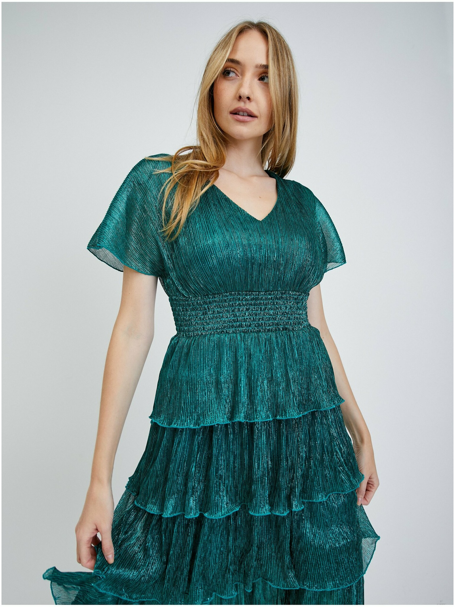 315-7 EMILY Plisirana haljina s volanima i izrezom - boja ljeskova