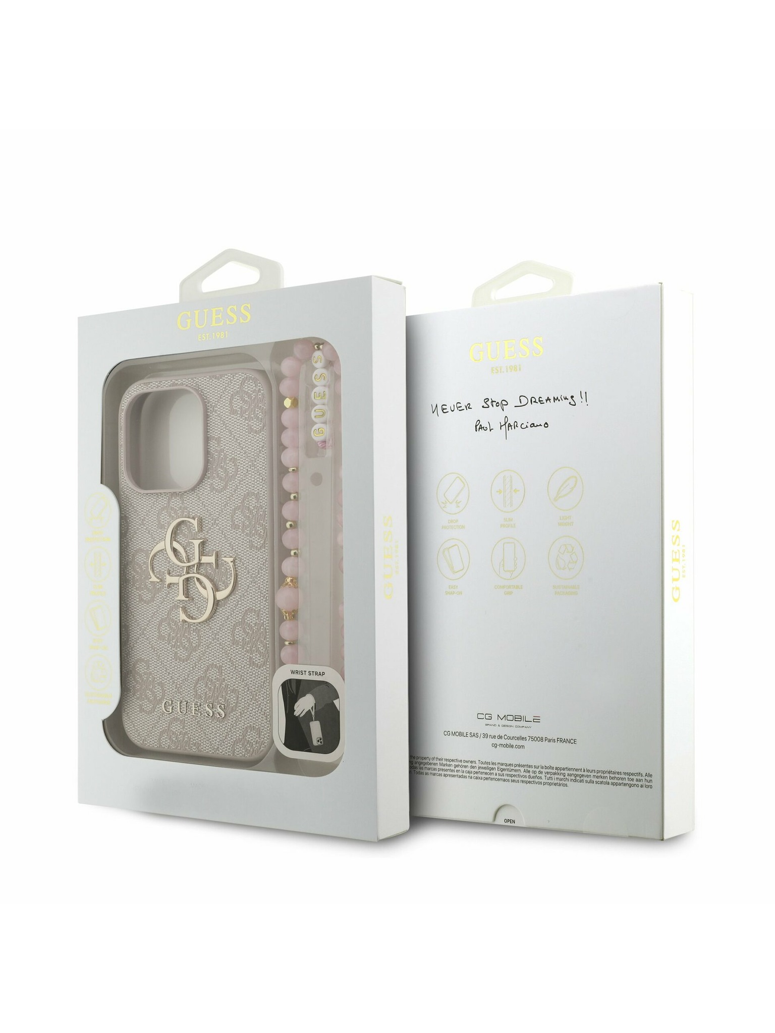 Guess PU Kožni 4G Šareni prsten Remen MagSafe Stražnji poklopac za iPhone 16 Pro Rozi