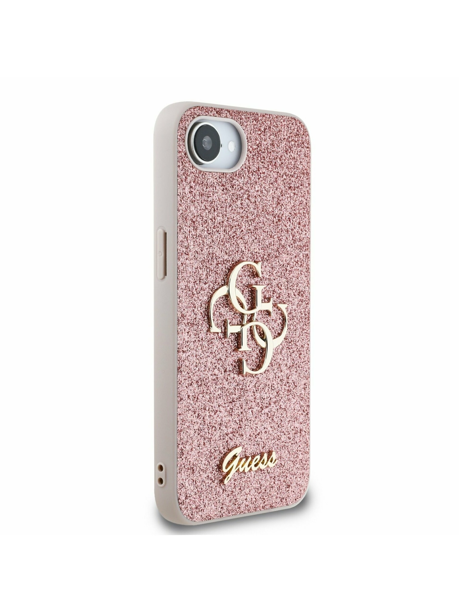 Guess PU 4G Metal Logo Strap Stražnji Poklopac za iPhone 15 Ružičasti