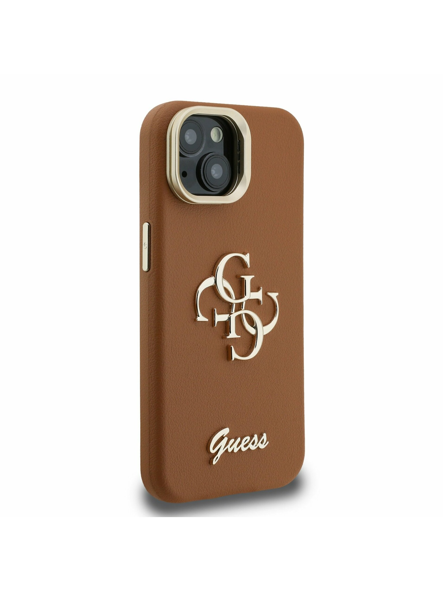 Guess PU 4G Metal Logo Strap Stražnji Poklopac za iPhone 16 Smeđi