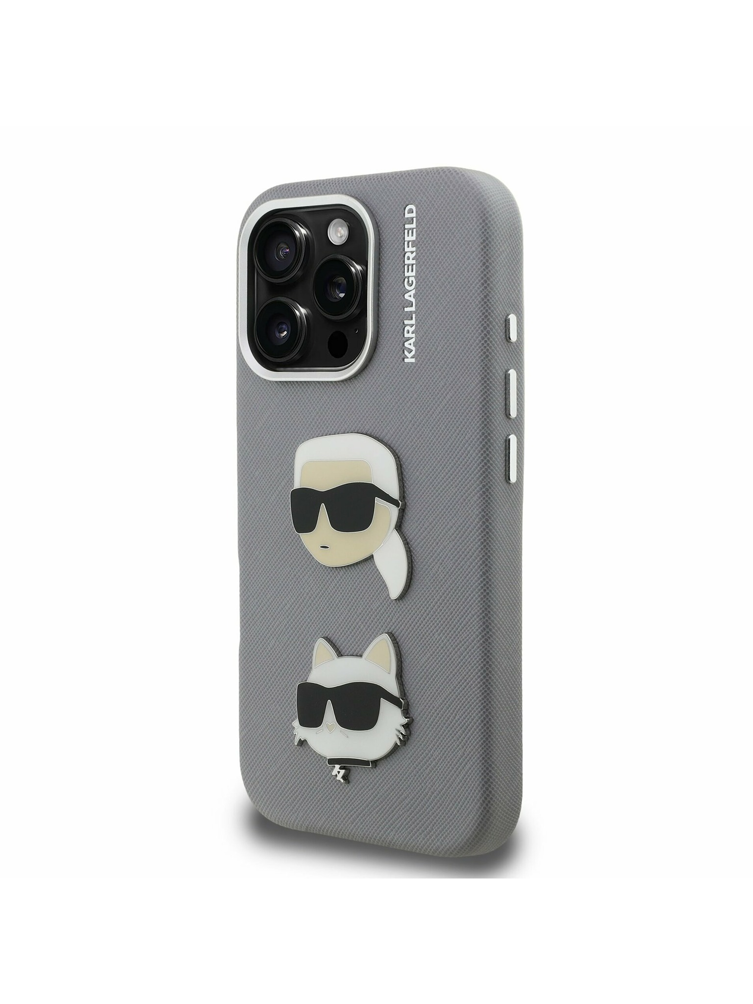Karl Lagerfeld Grained PU K&CH Heads Stražnji poklopac za iPhone 15 Pro Grey