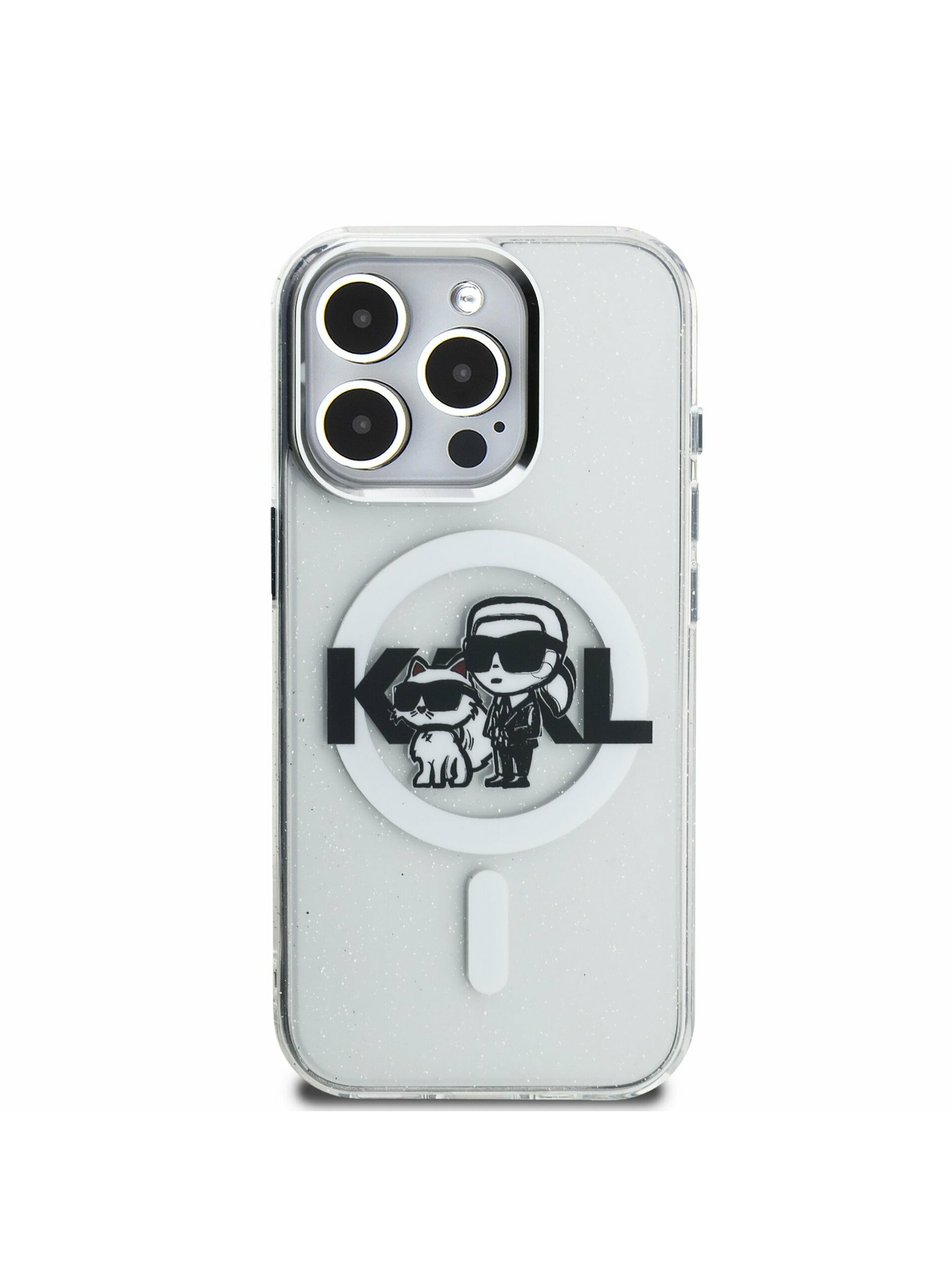 Karl Lagerfeld IML Glitter Karl and Choupette Sketch MagSafe Stražnji poklopac za iPhone 16 prozirni