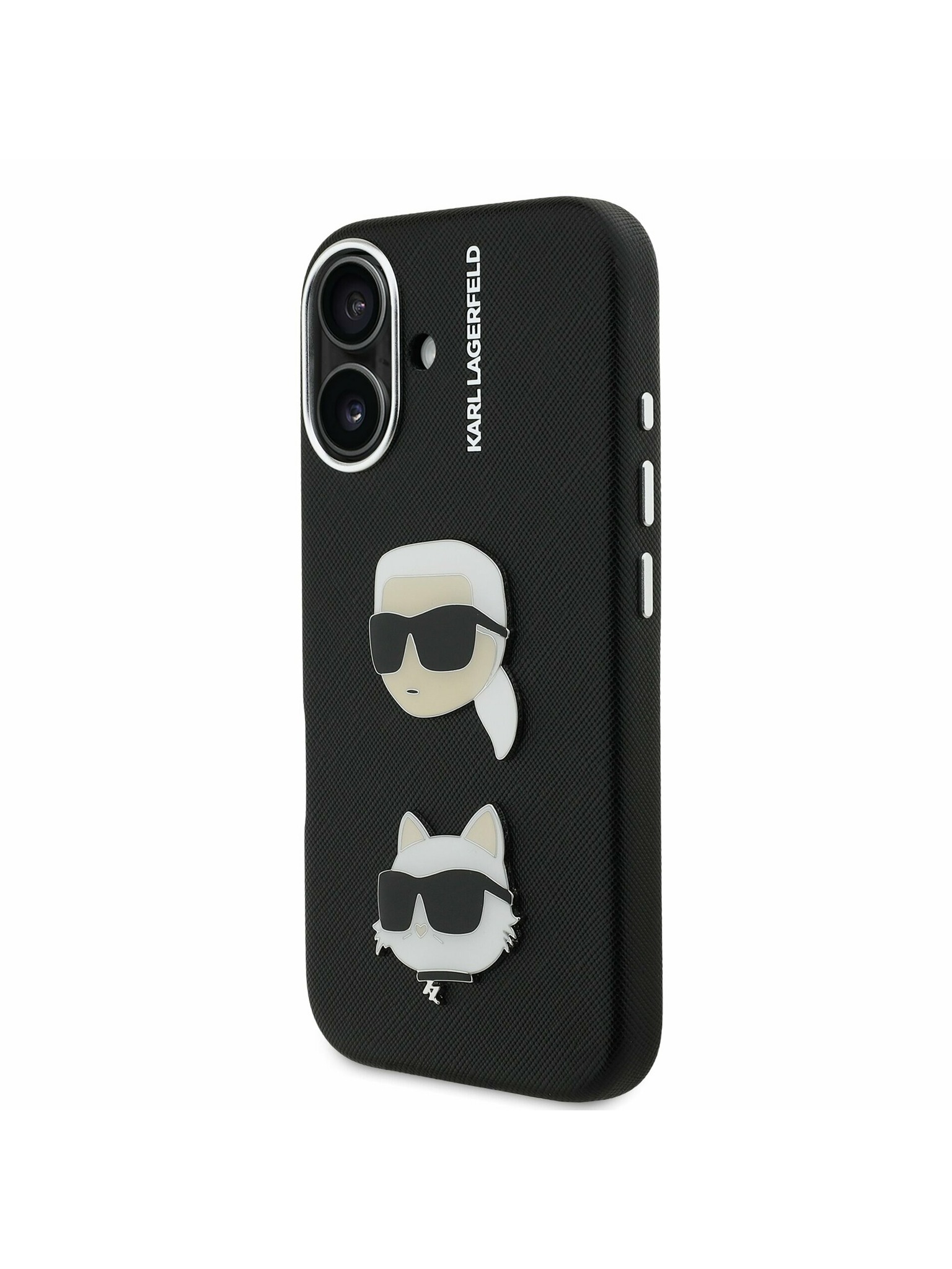 Karl Lagerfeld Grained PU K&CH Heads stražnji poklopac za iPhone 16 Pro Max Crni