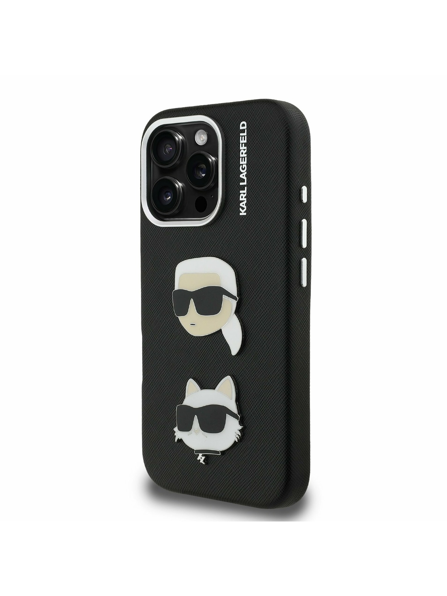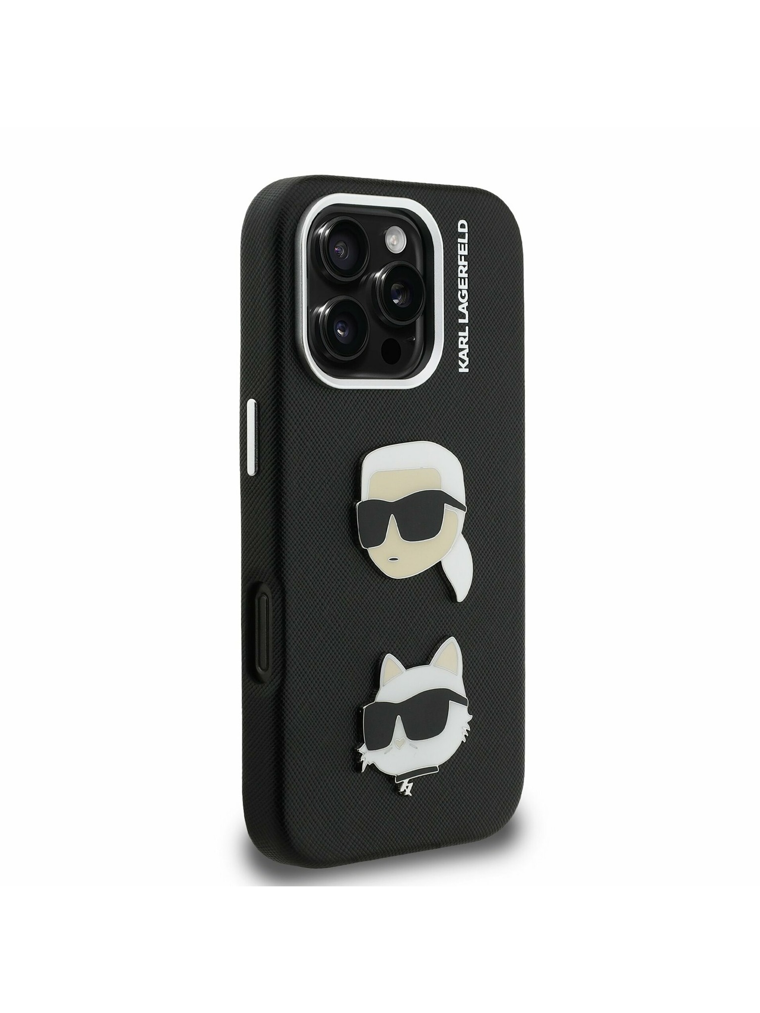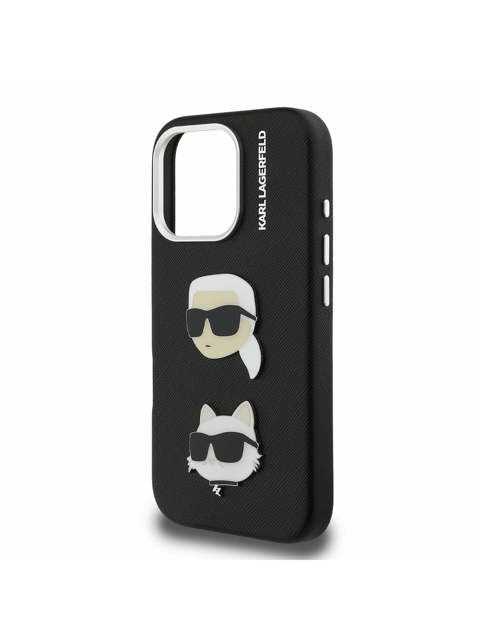 Karl Lagerfeld Grained PU K&CH Heads Stražnji poklopac za iPhone 16 crni