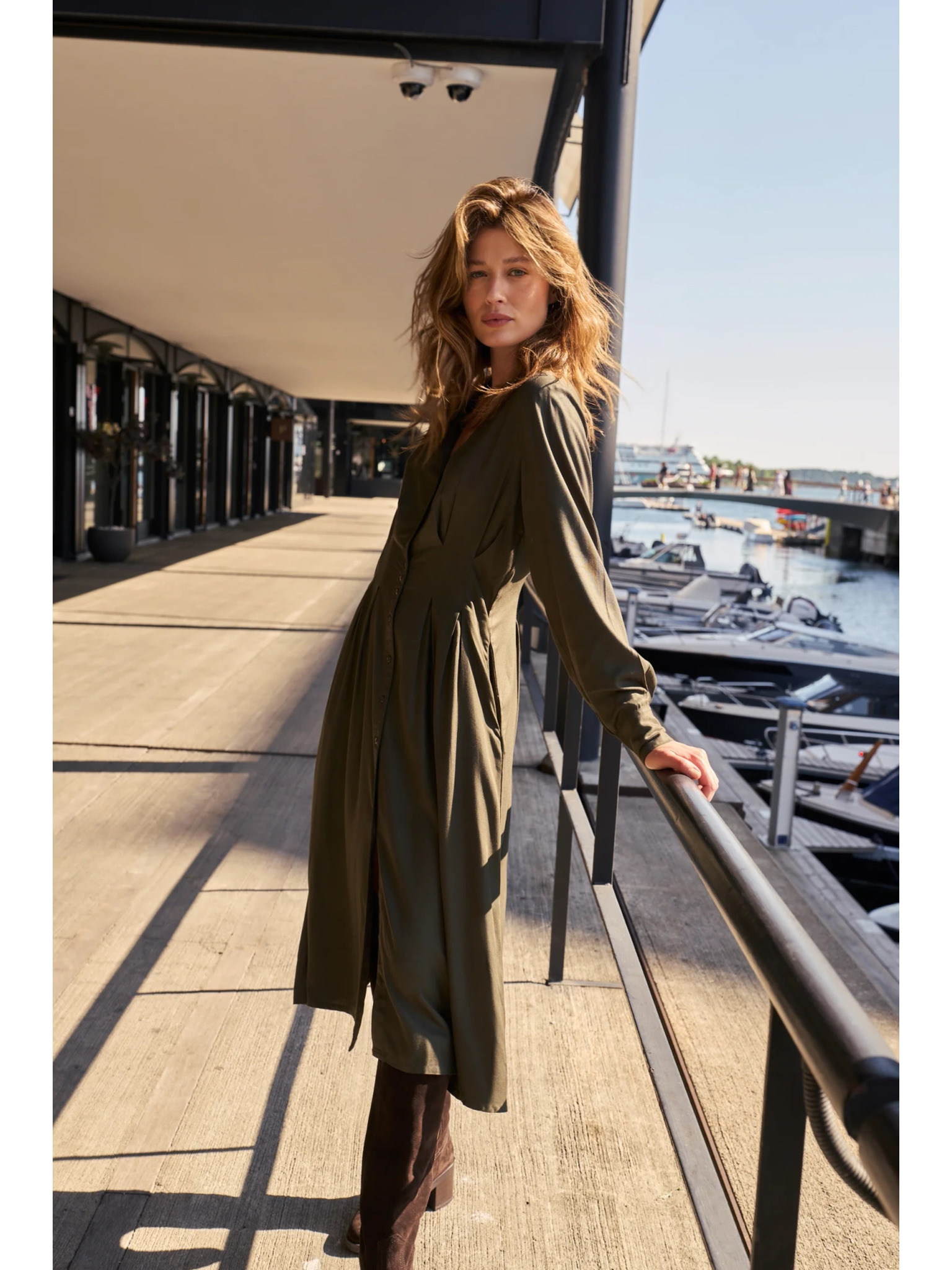 Duge haljine JENNIFER s razrezom - bočasto zelene