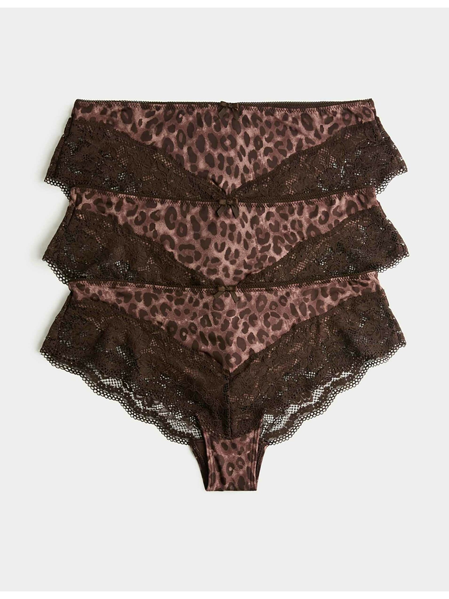 Gaćice do struka s čipkastim rubom i leopard printom, 3 kom u pakiranju Marks & Spencer smeđa