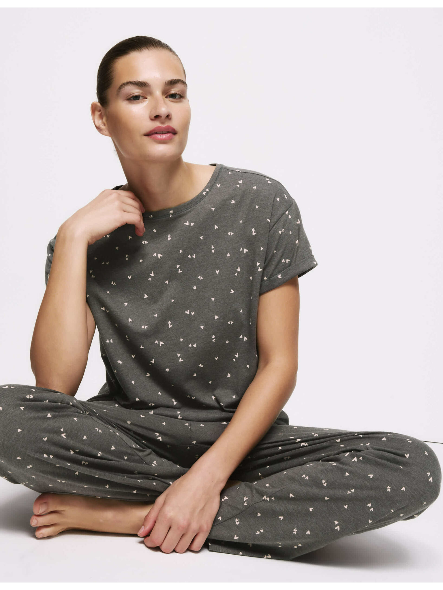 Rebrasti pidžama top s ovratnicima i dugim rukavima Marks & Spencer siva