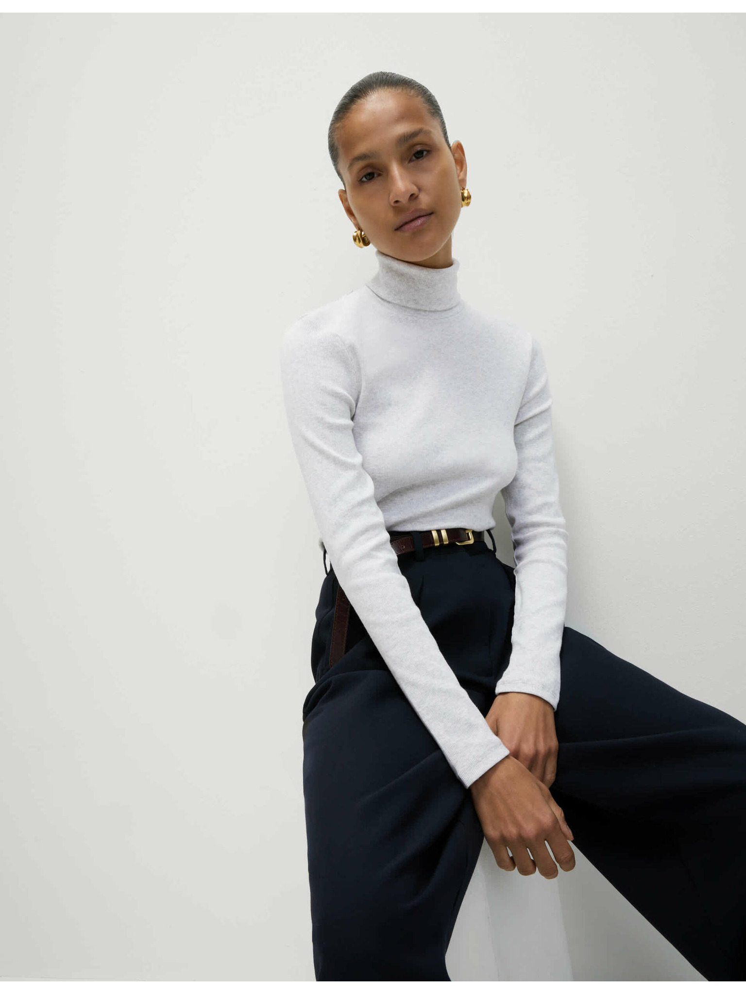 Rebrasti top s visokim ovratnikom i visokim udjelom pamuka Marks & Spencer crna