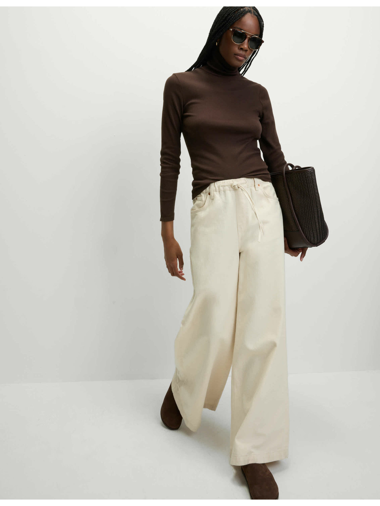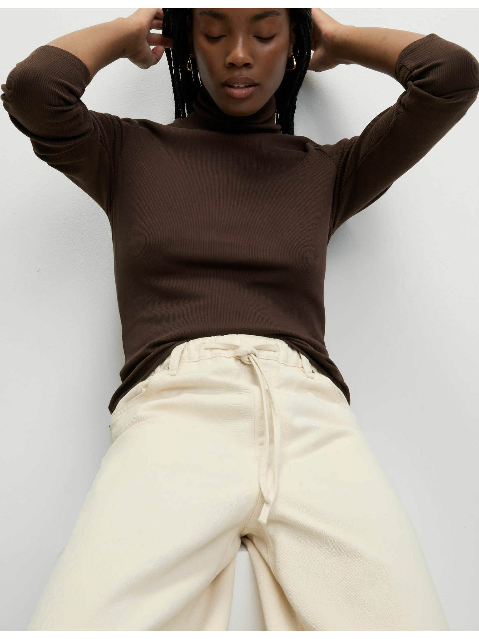 Rebrasti top s visokim ovratnikom i visokim udjelom pamuka Marks & Spencer kremasta