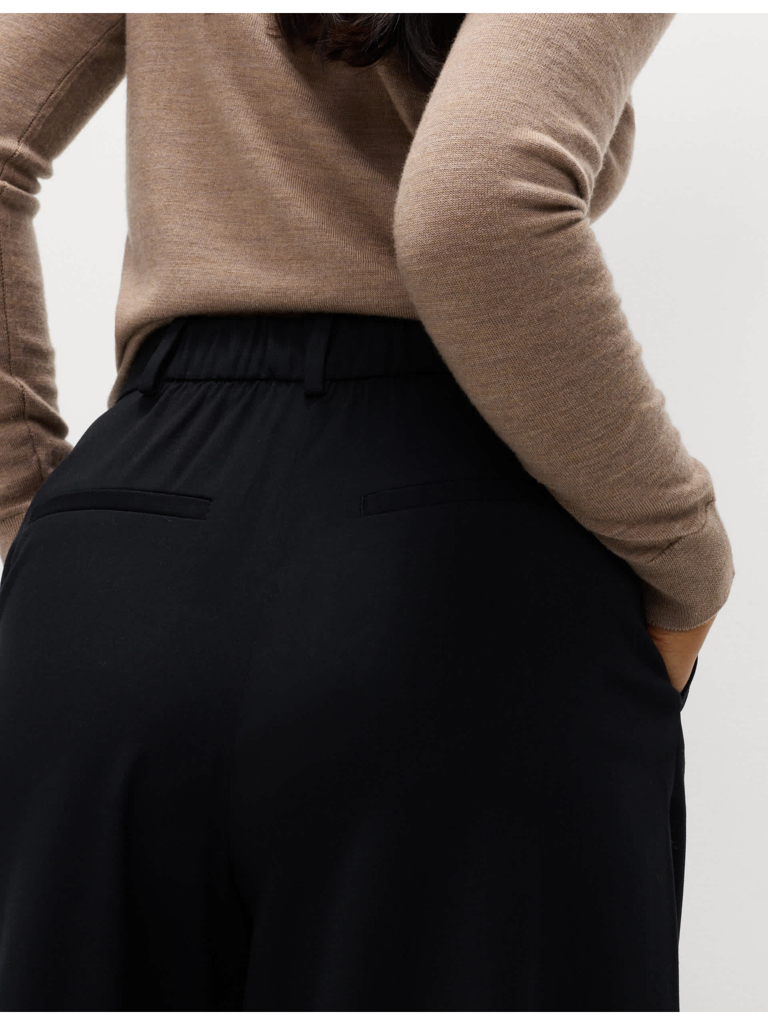 Krep hlače s širokim nogavicama i elastičnim pojasom Marks & Spencer smeđa