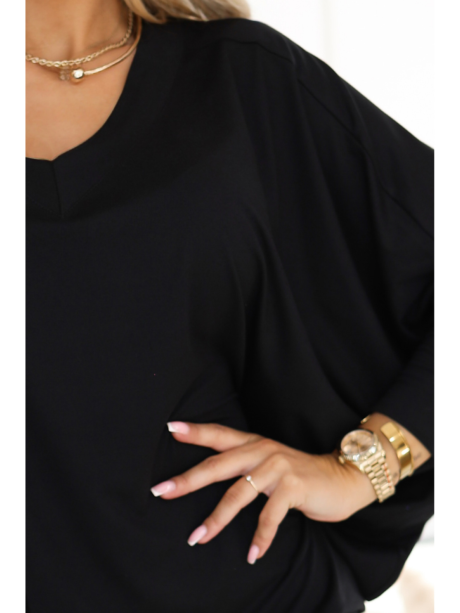 Sjajna duga haljina s dekolteom i dugim rukavima - crna Numoco NELA