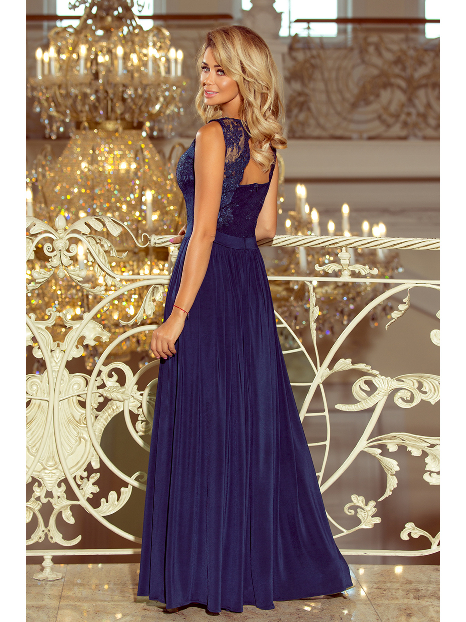 LEA Duge elegantne maxi haljine s čipkanim gornjim dijelom i prorezom na nozi - tamno plave