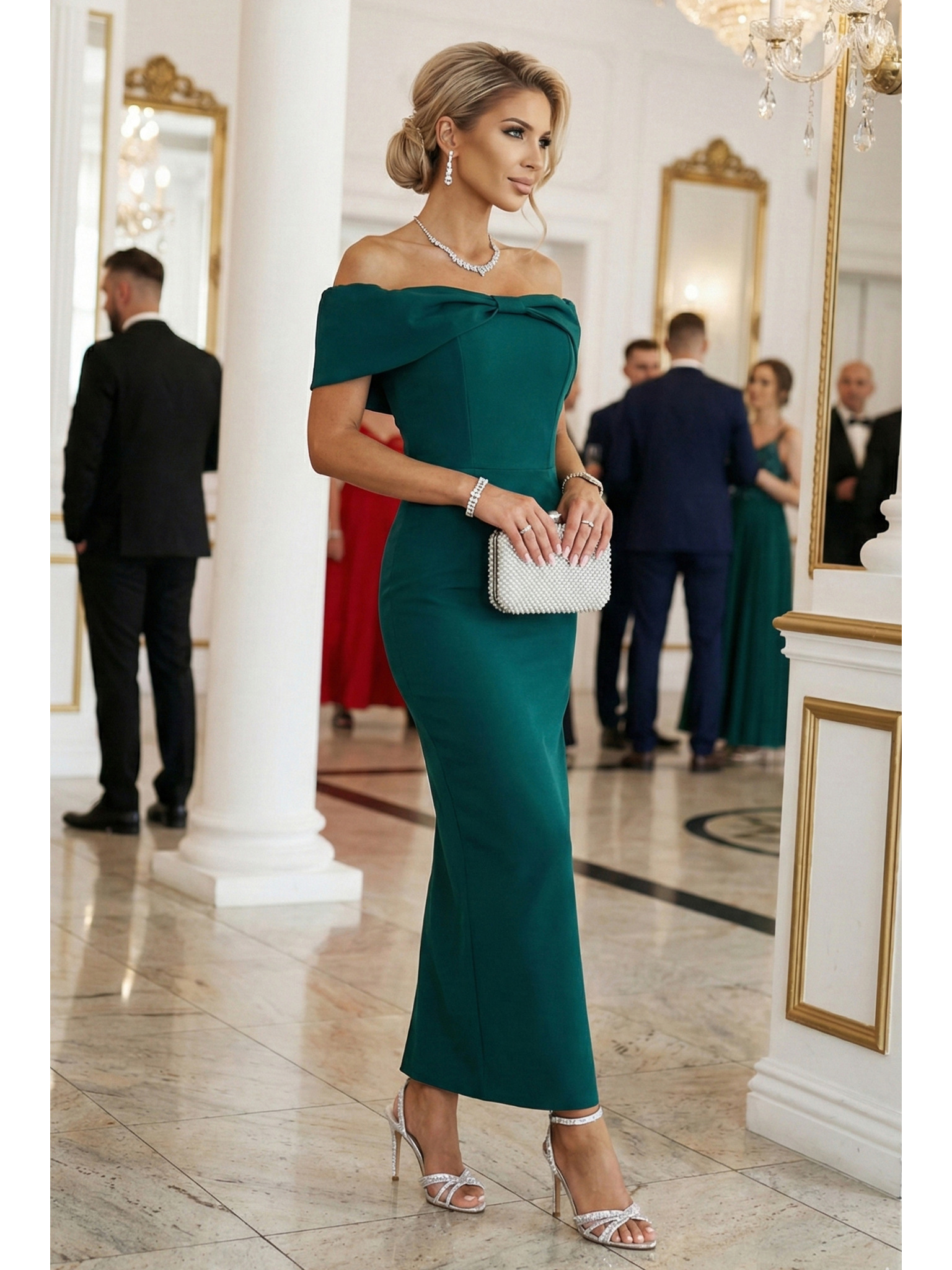 Senzualne midi haljine s mašnom na izrezu - boce zelena