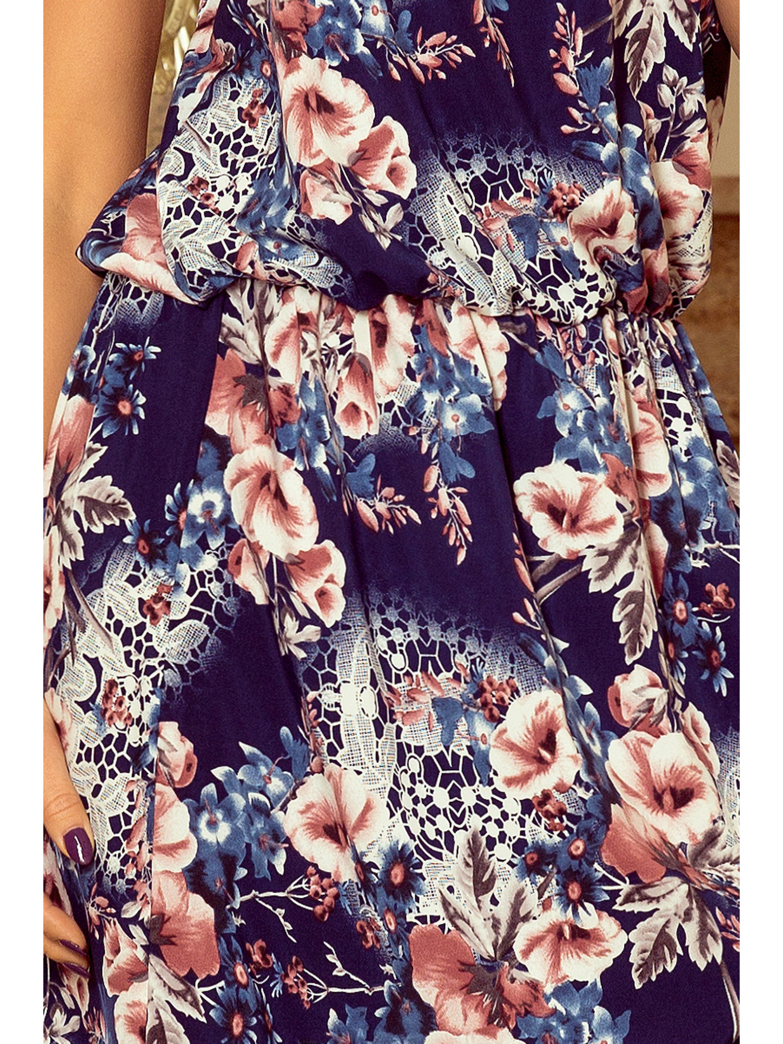 LORETTA jedinstvene duge haljine s til rukavima i dekolteom - tamno plava
