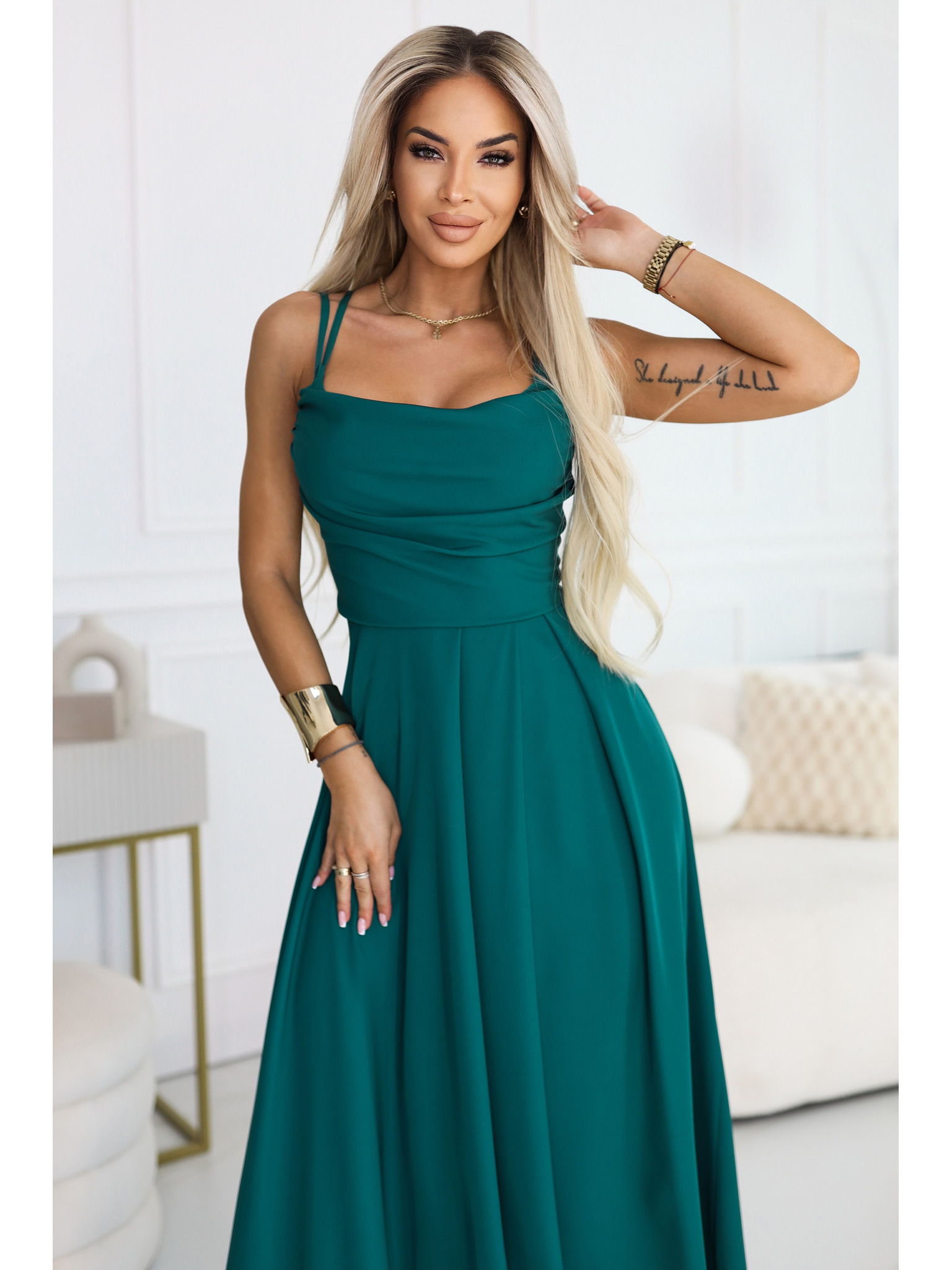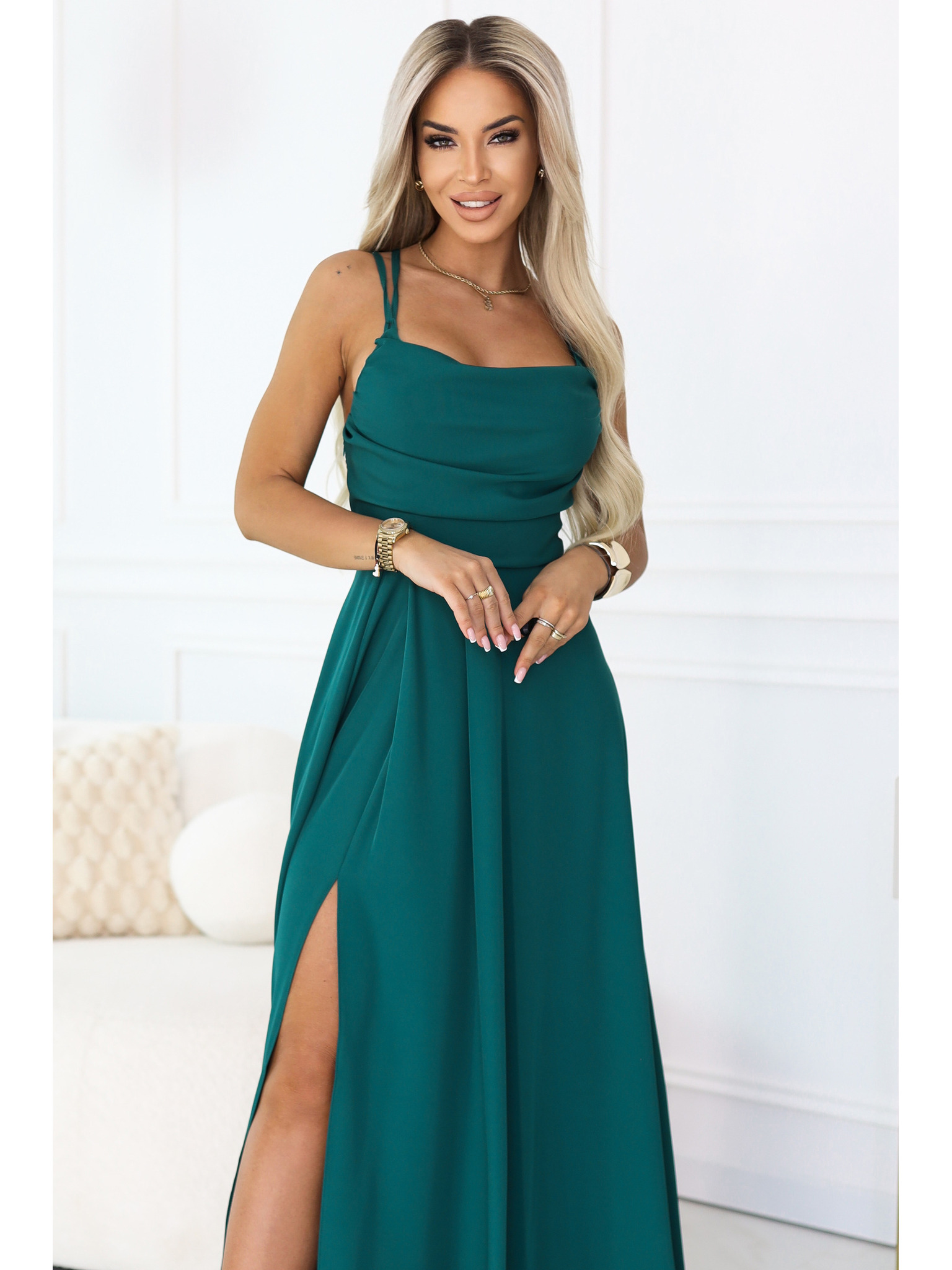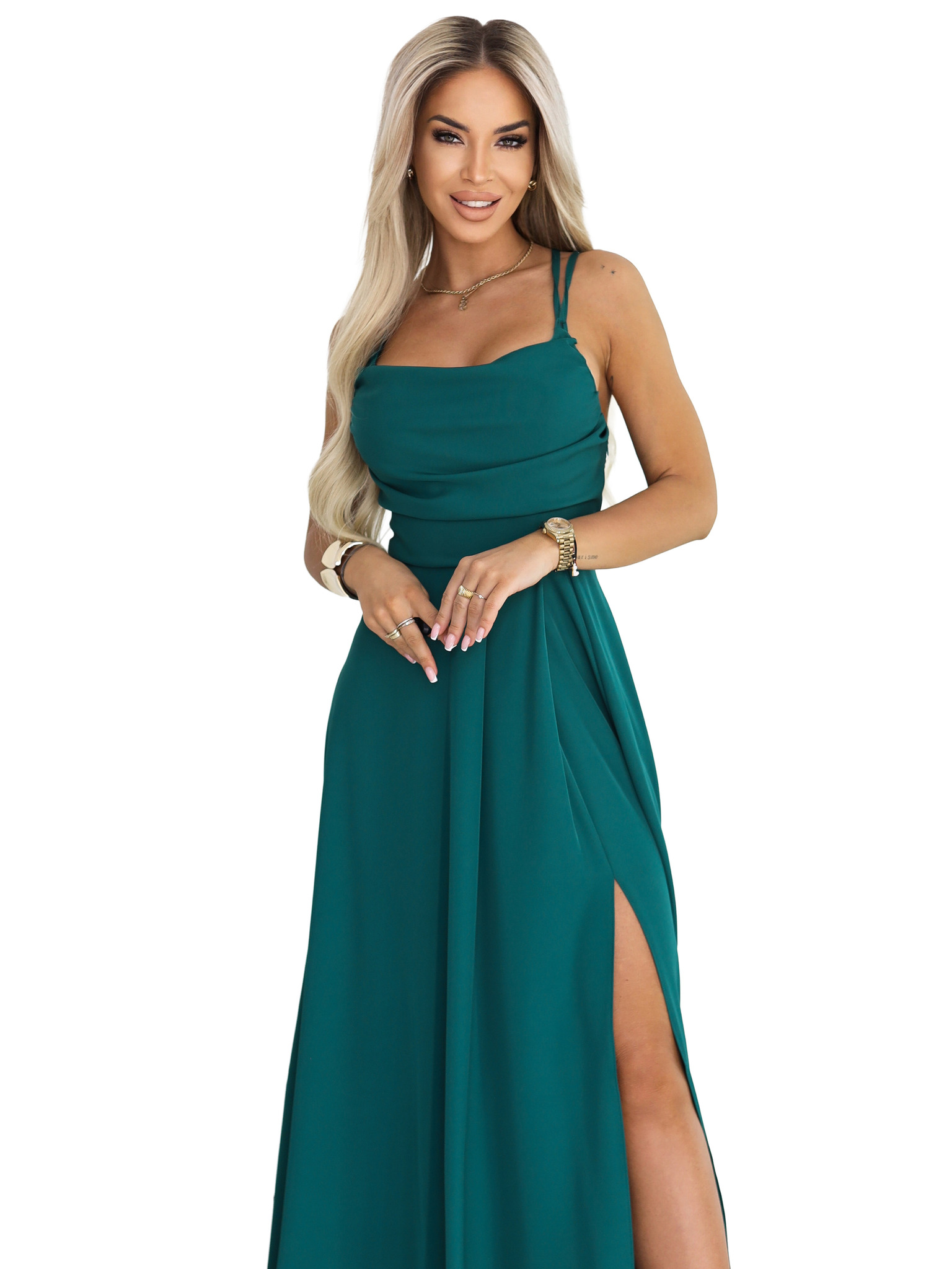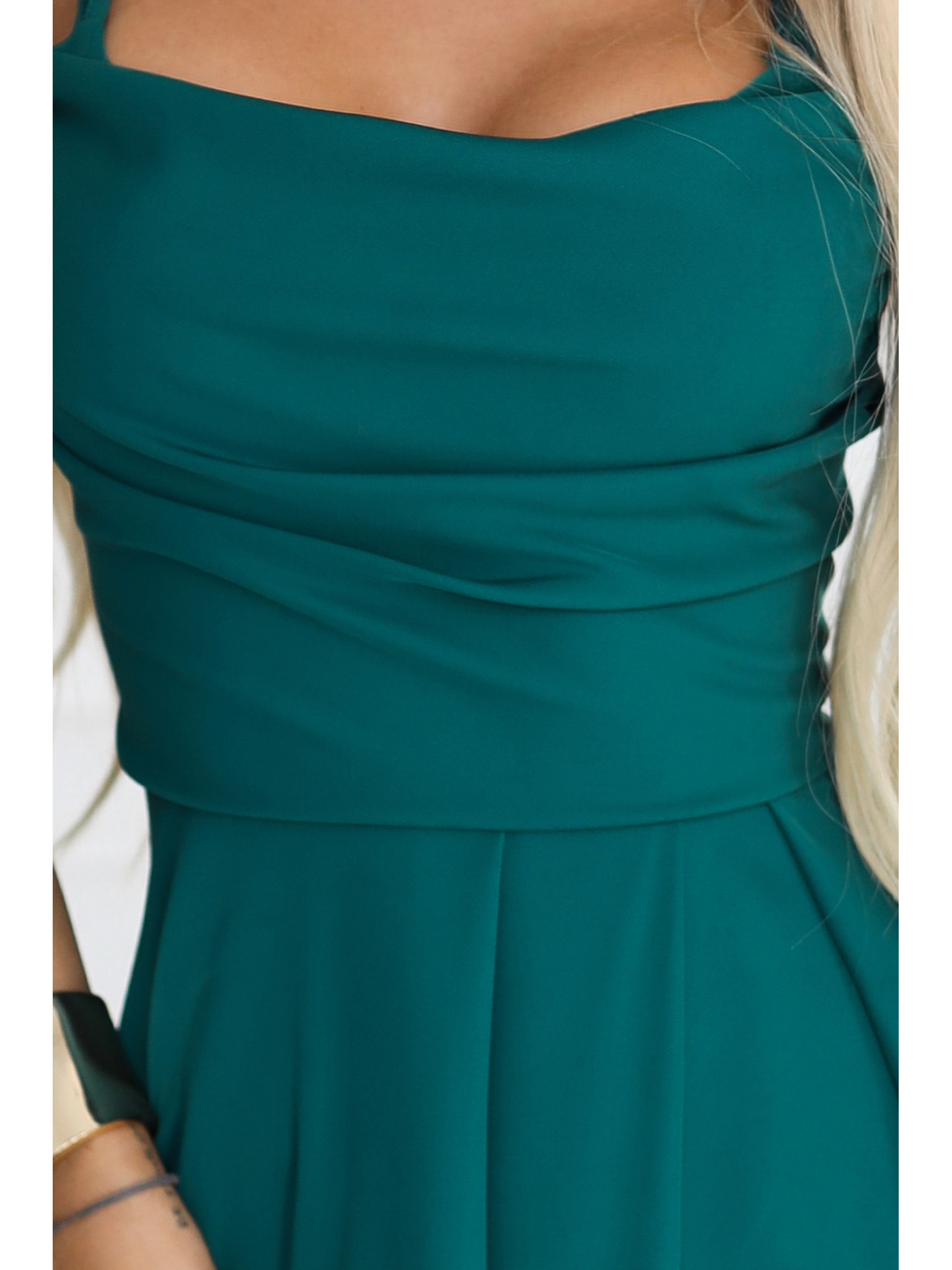 AURELIA duge haljine s prorezom na nogavici i dijamantskim izrezom - bočano zelena