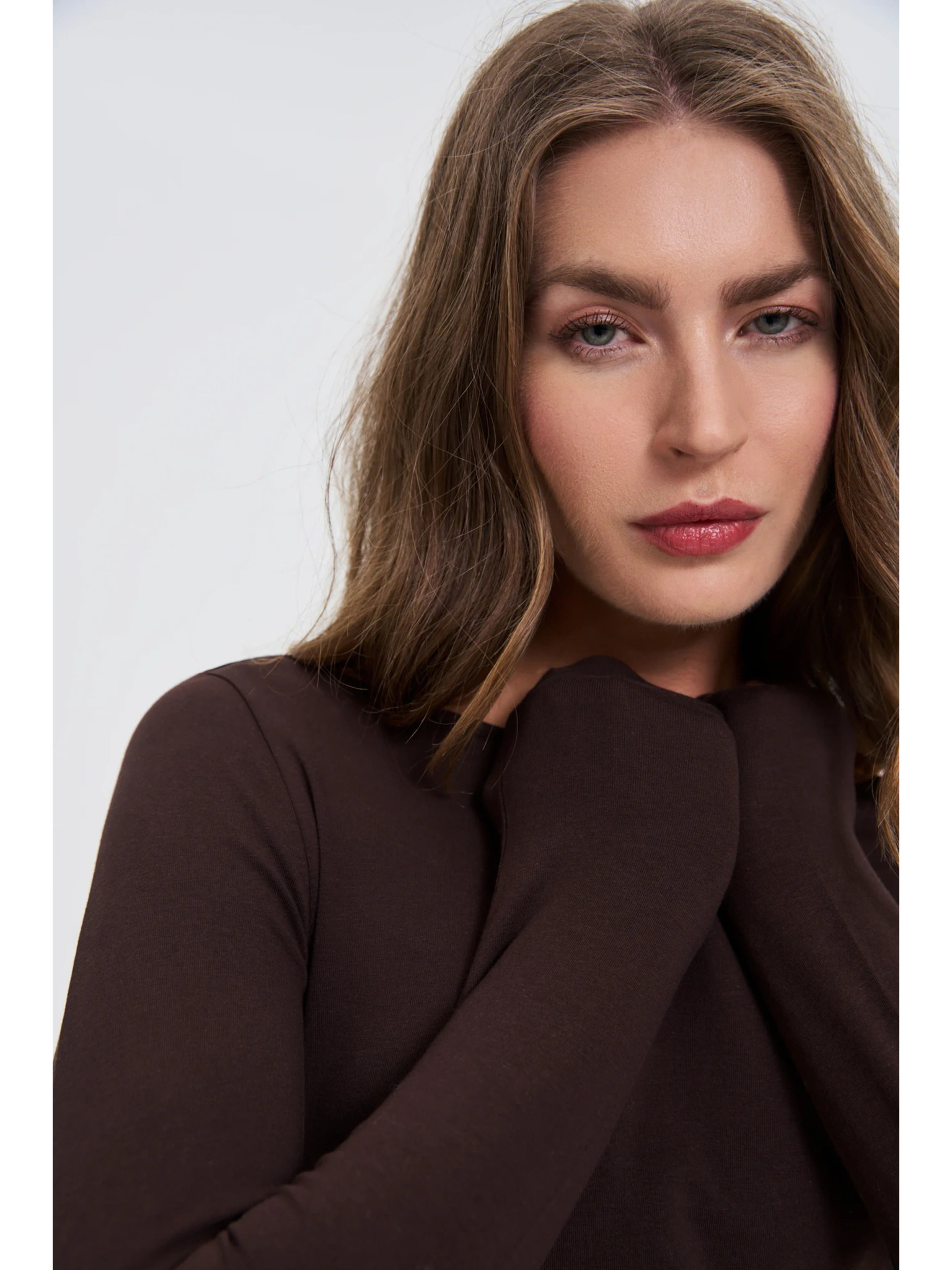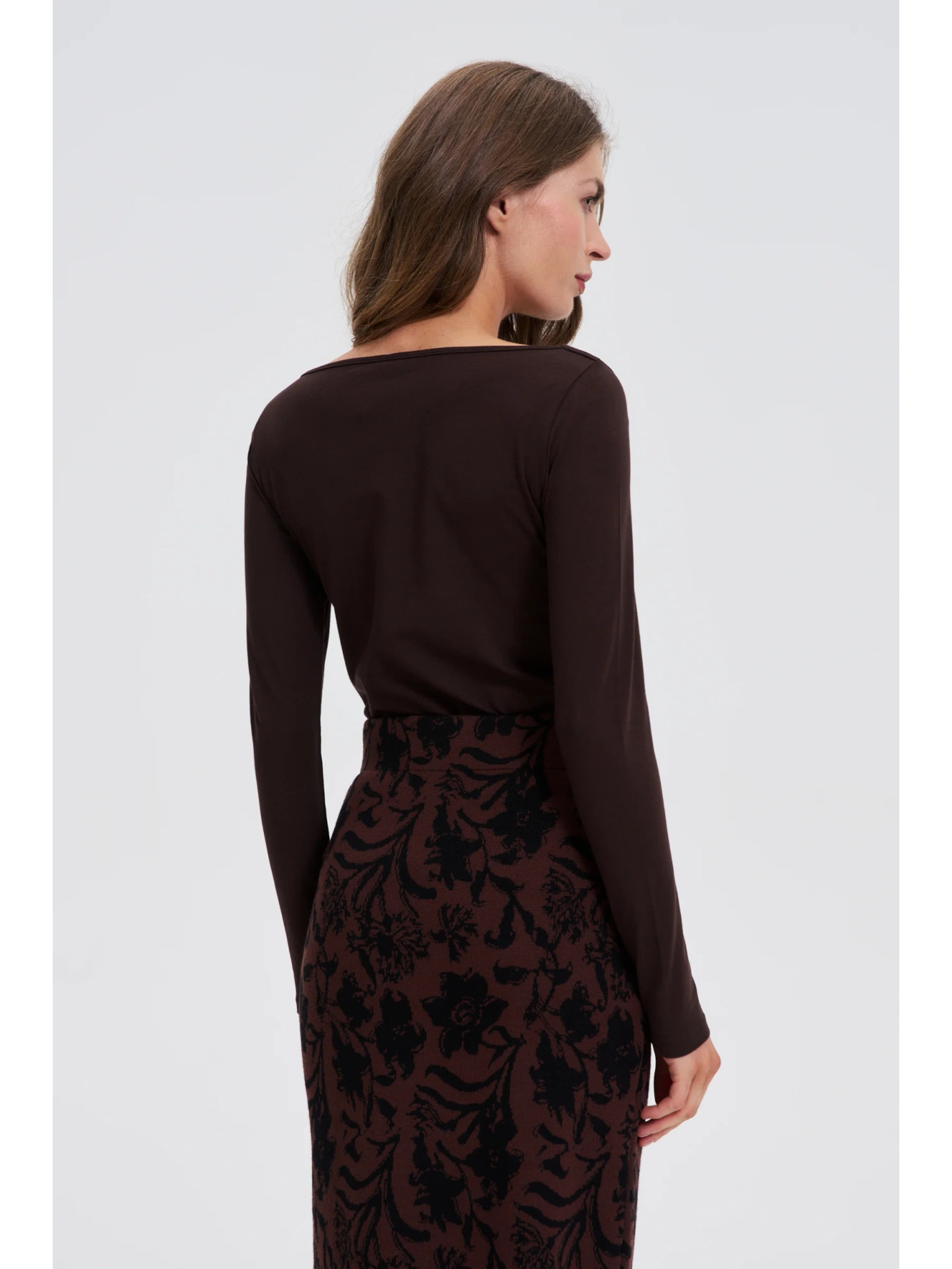 Uska smeđa bluza s dugim rukavima Moodo