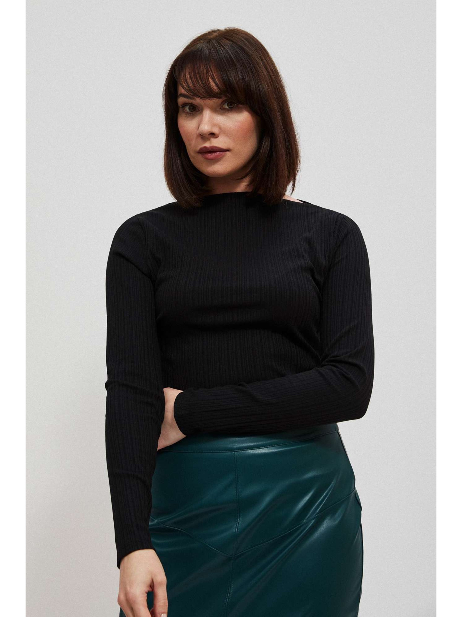 Crni ženski top s dugim rukavima