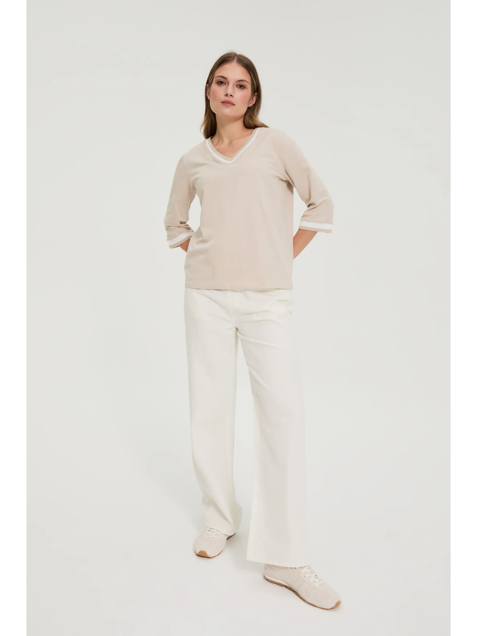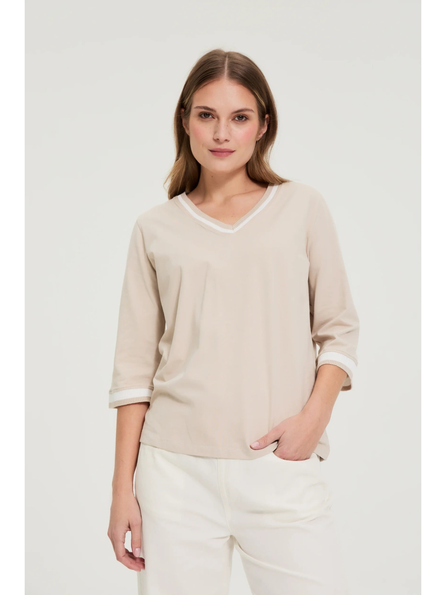 Bež ženski top s dugim rukavima