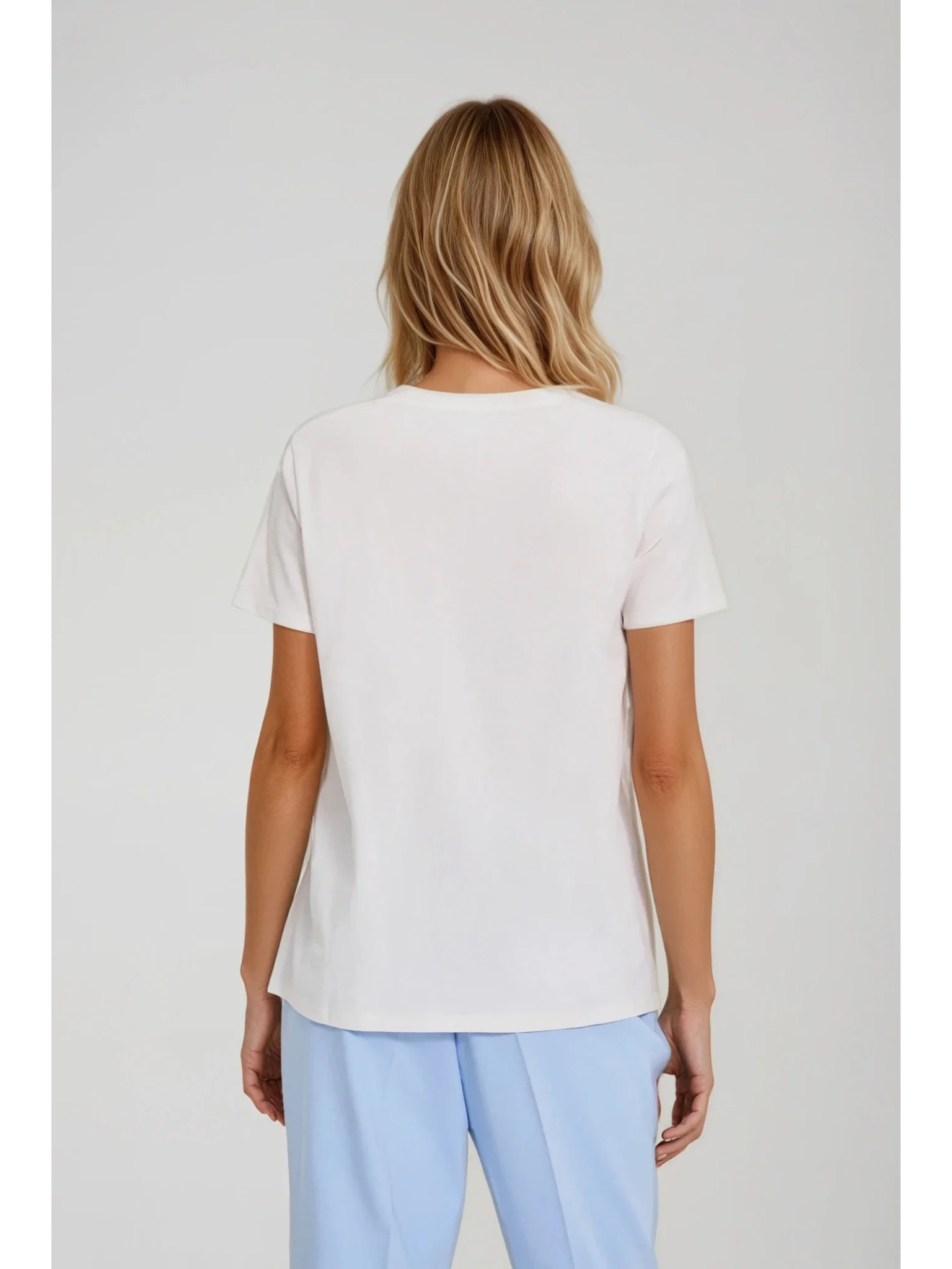 Ženska majica s ukrašenim izrezom – bijela