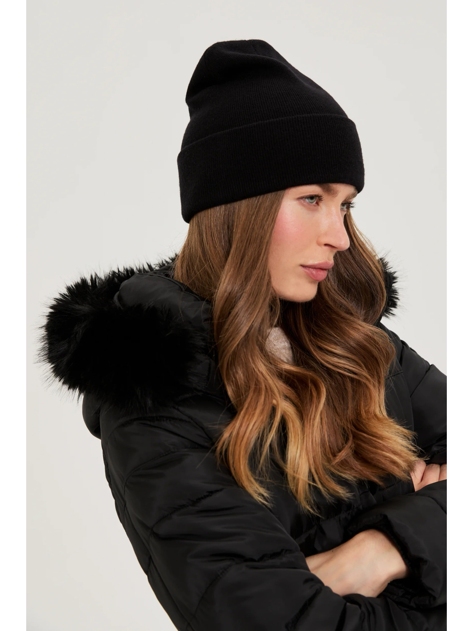 Topla krznena kapa crna Moodo