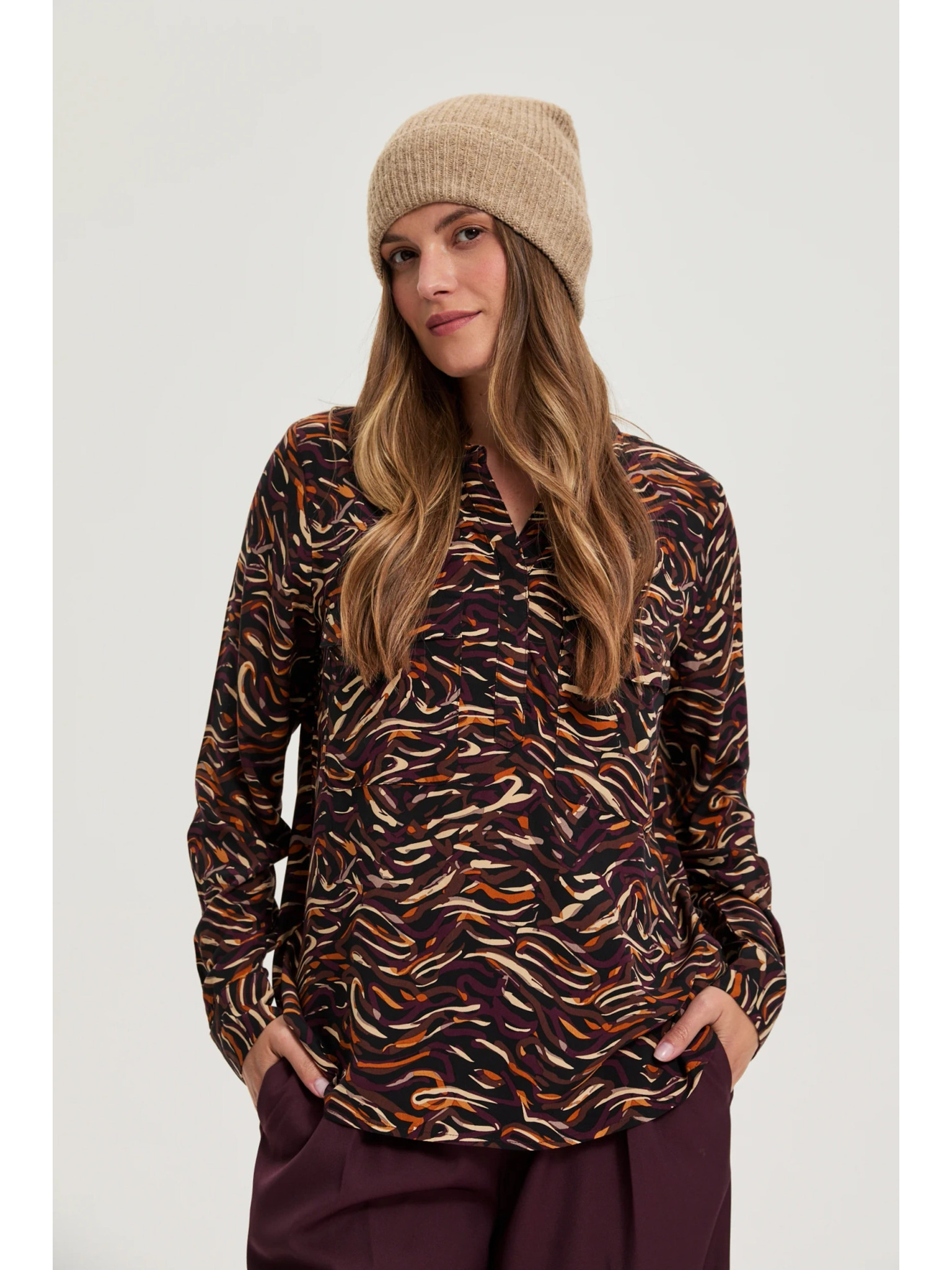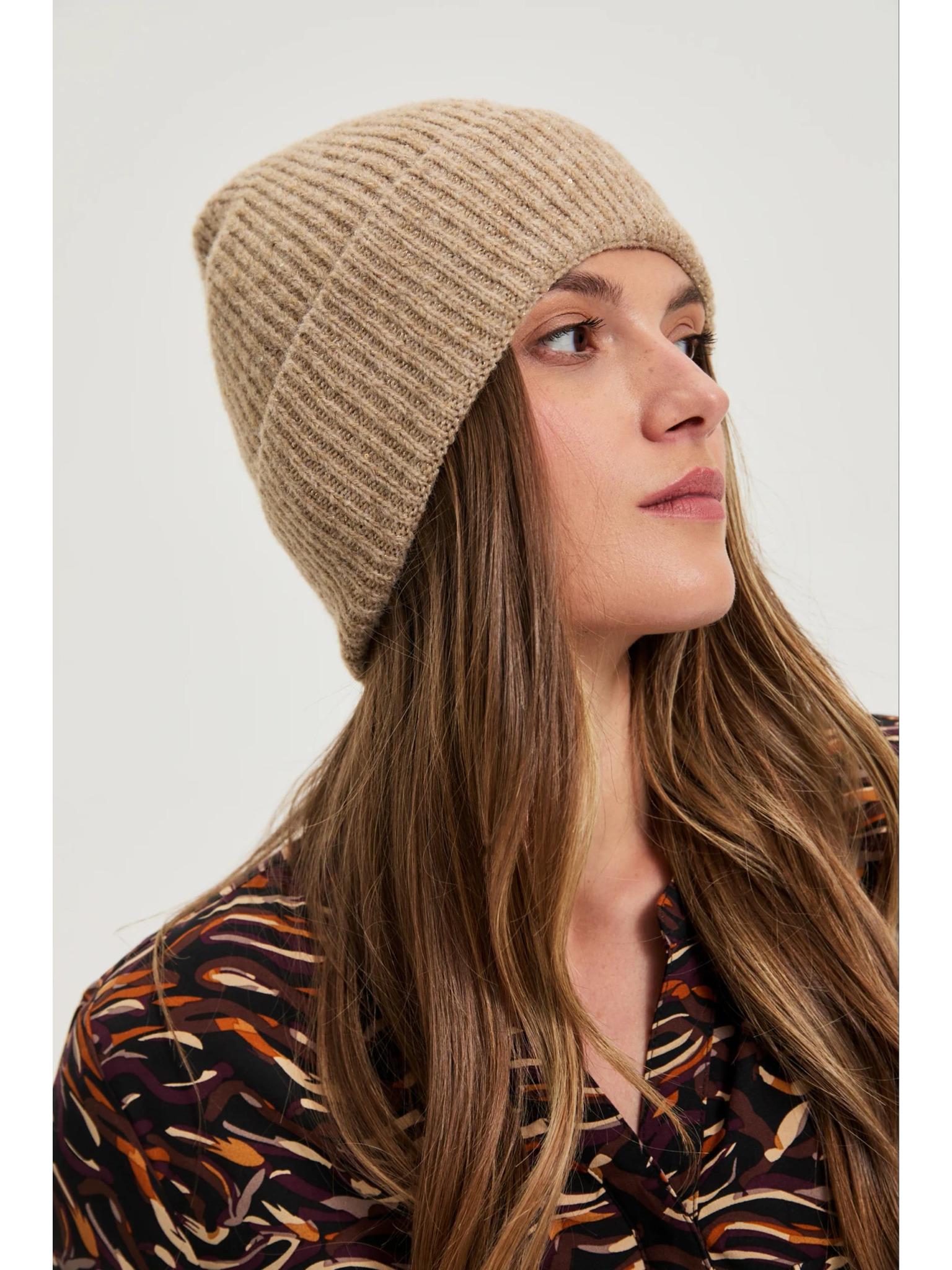 Zimska kapa s printom pantere pješčane boje Moodo