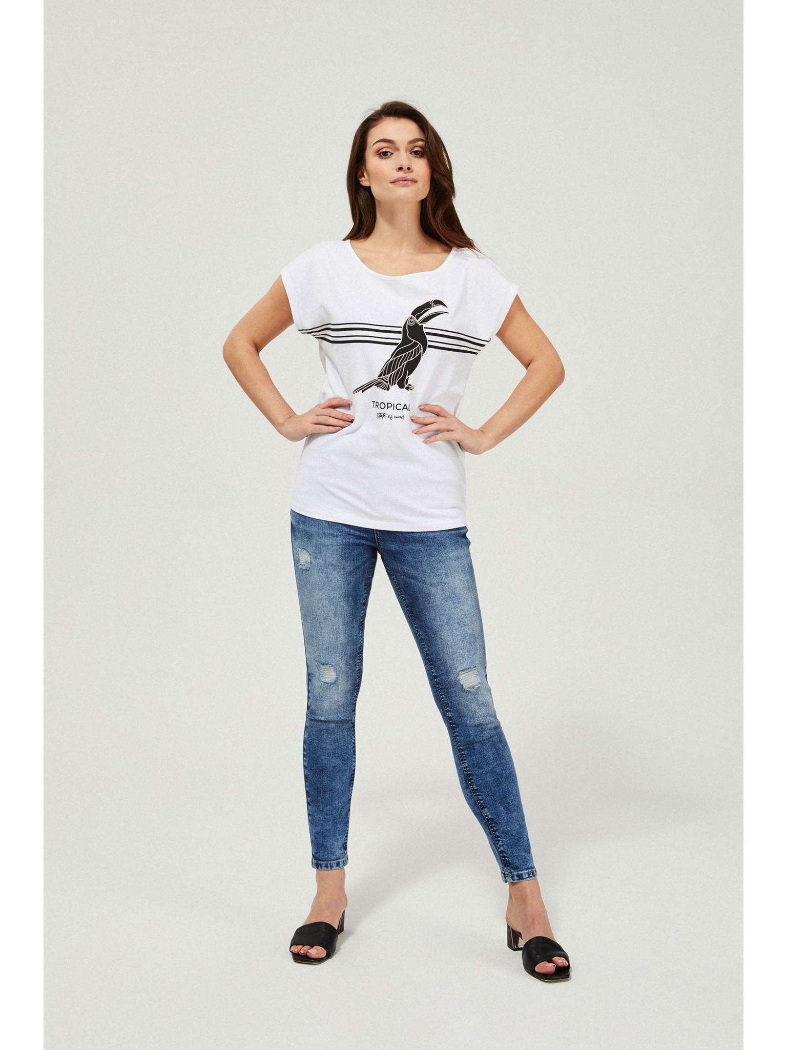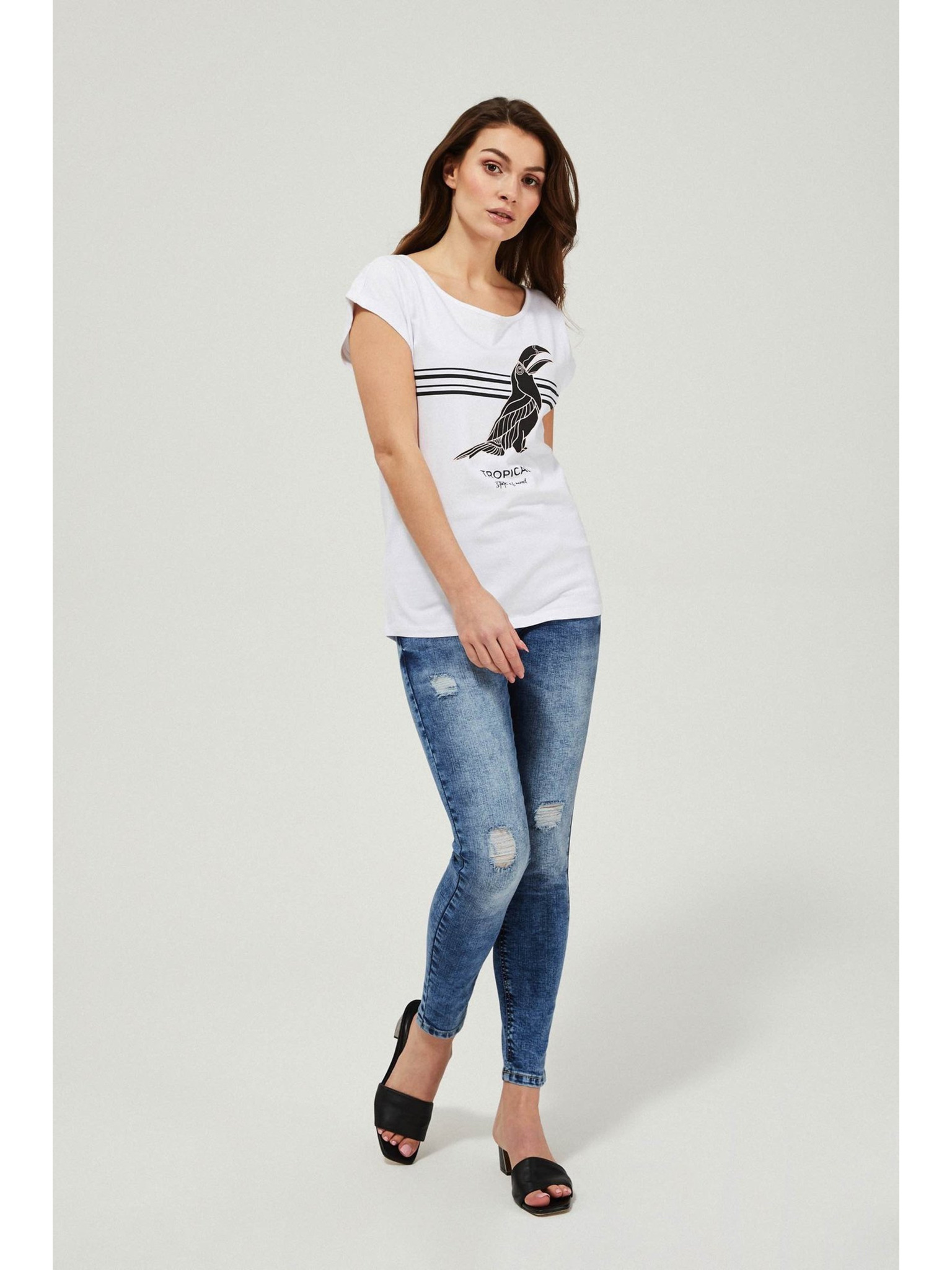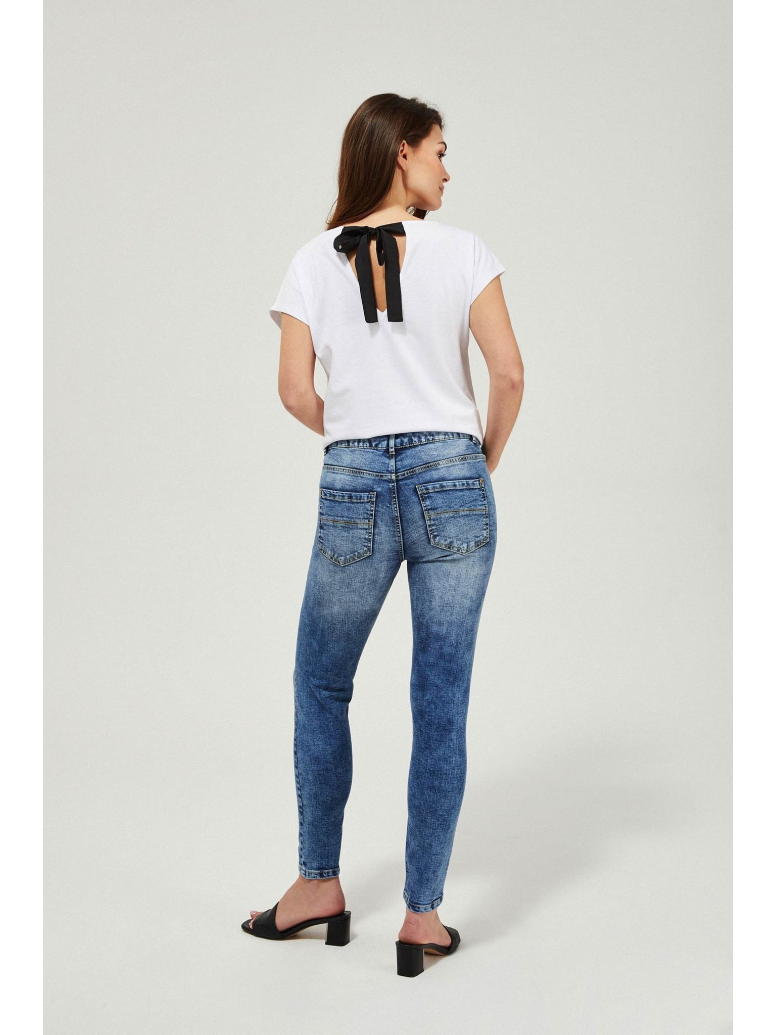 Uske traperice srednjeg struka s oderancima plave Moodo