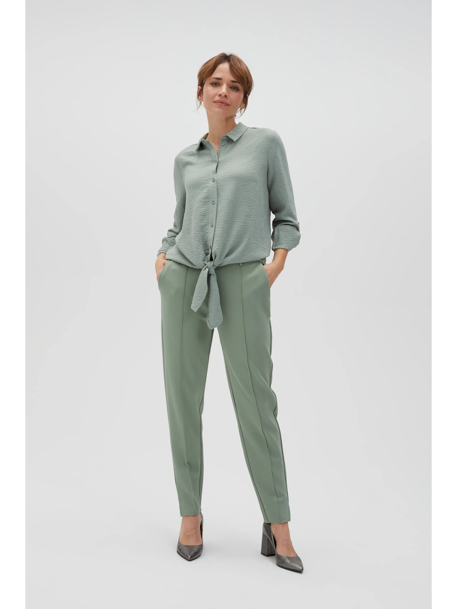 Maslinasta košulja Moodo sa vezivanjem