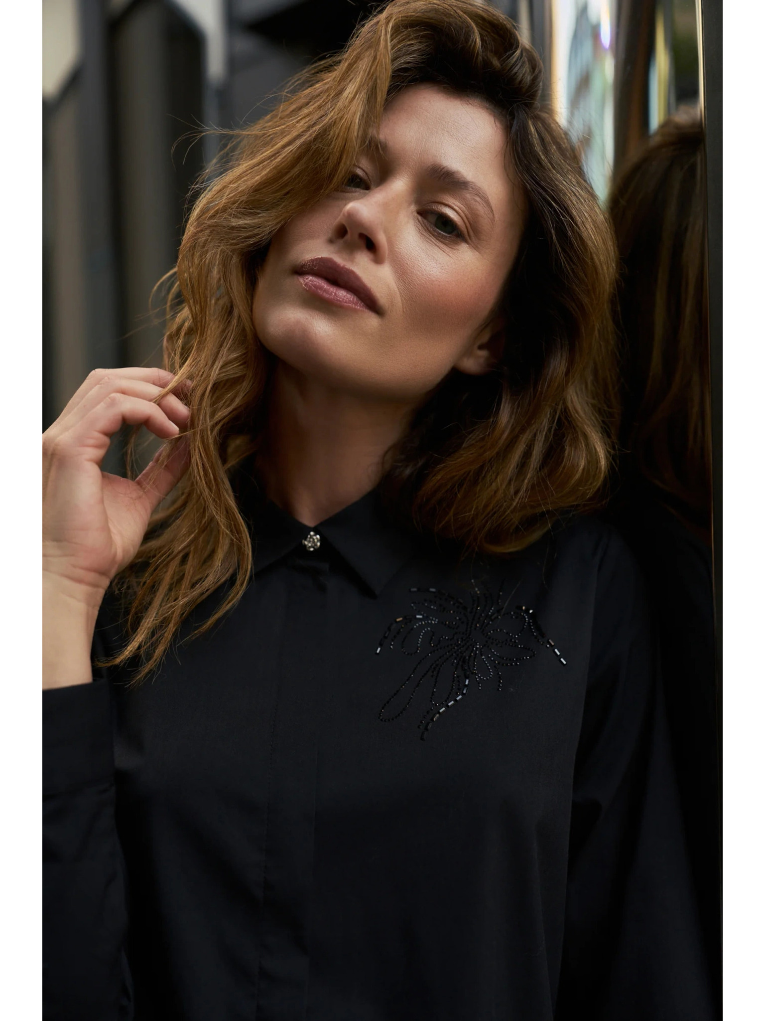 Crna košulja s ovratnikom Moodo