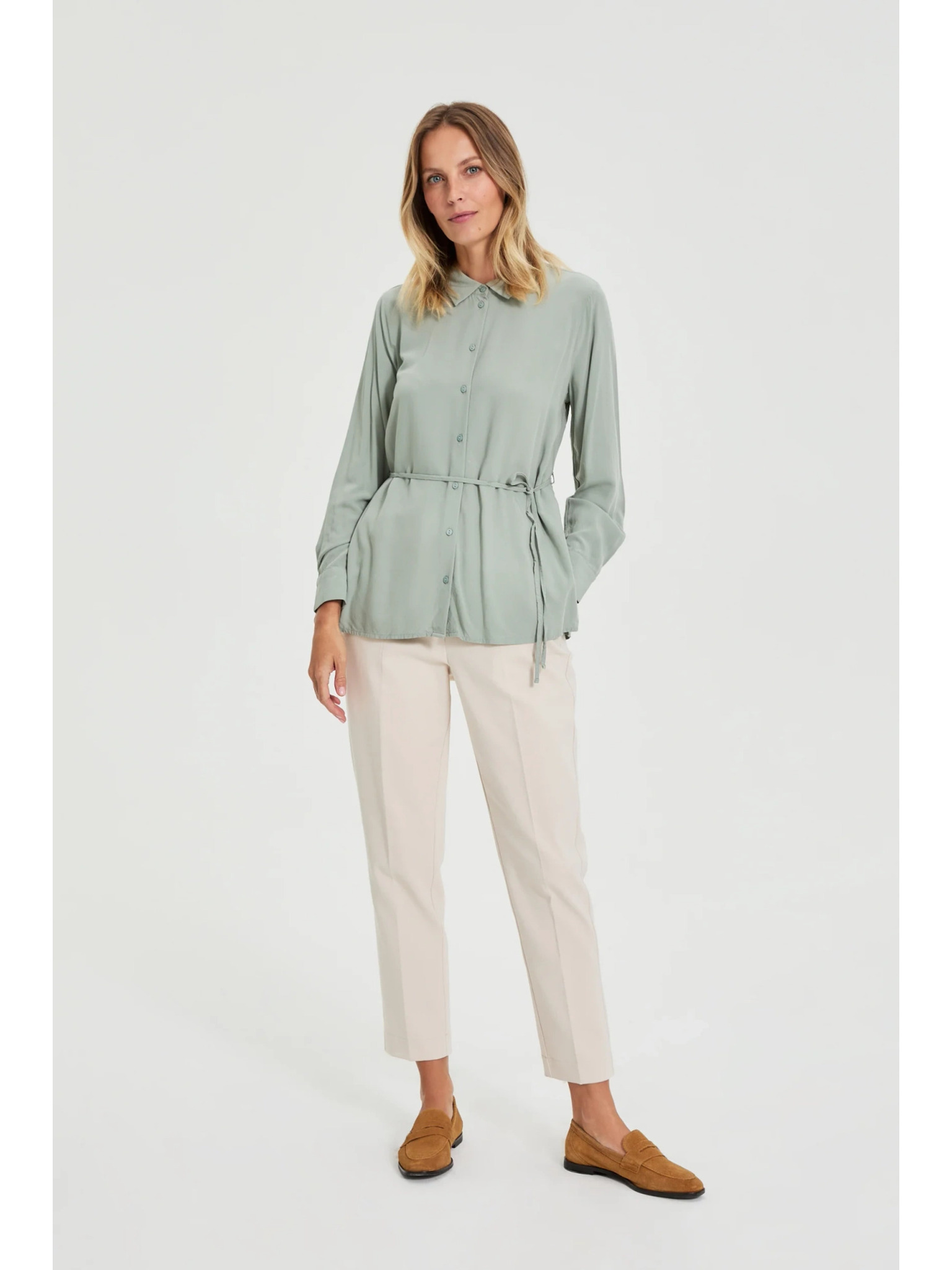 Maslinasta košulja Moodo sa vezivanjem