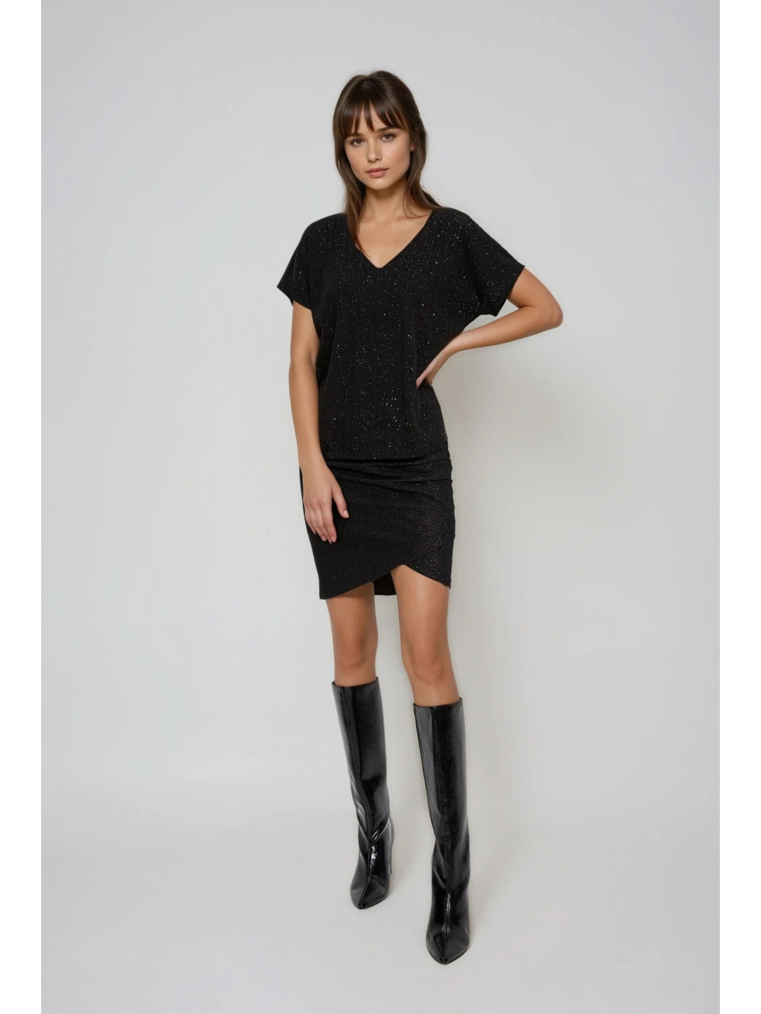 Sjajni top sa vezivanjem na leđima crni Moodo
