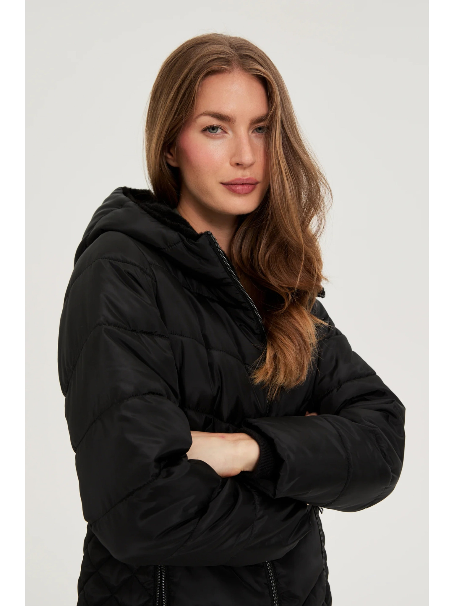 Jakna s prošivanom kapuljačom crna Moodo