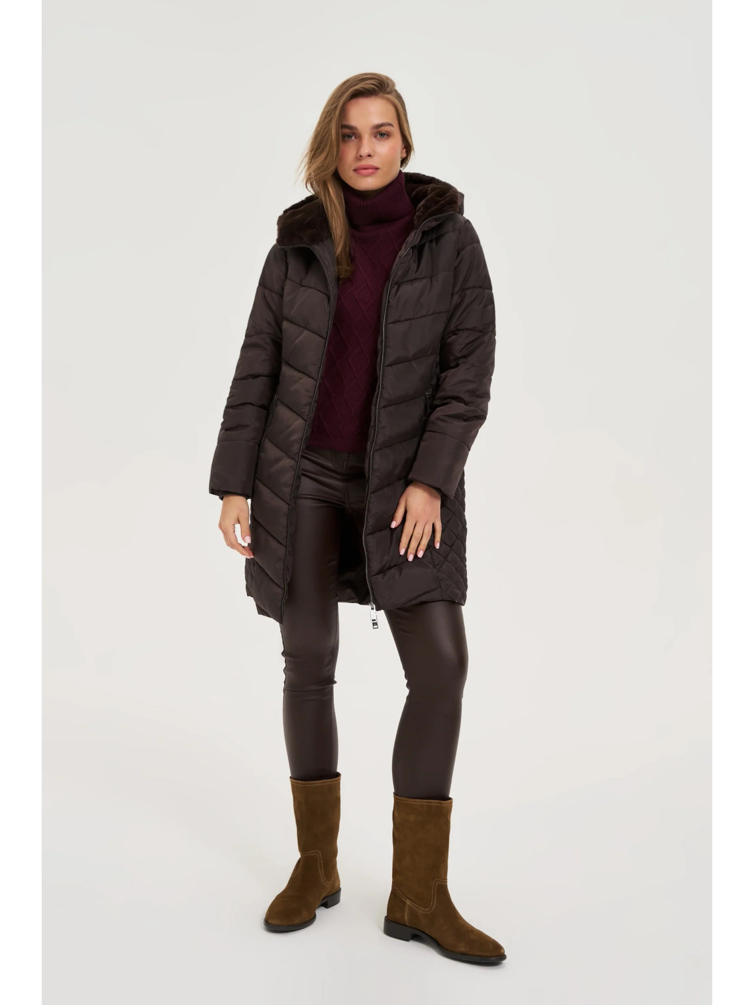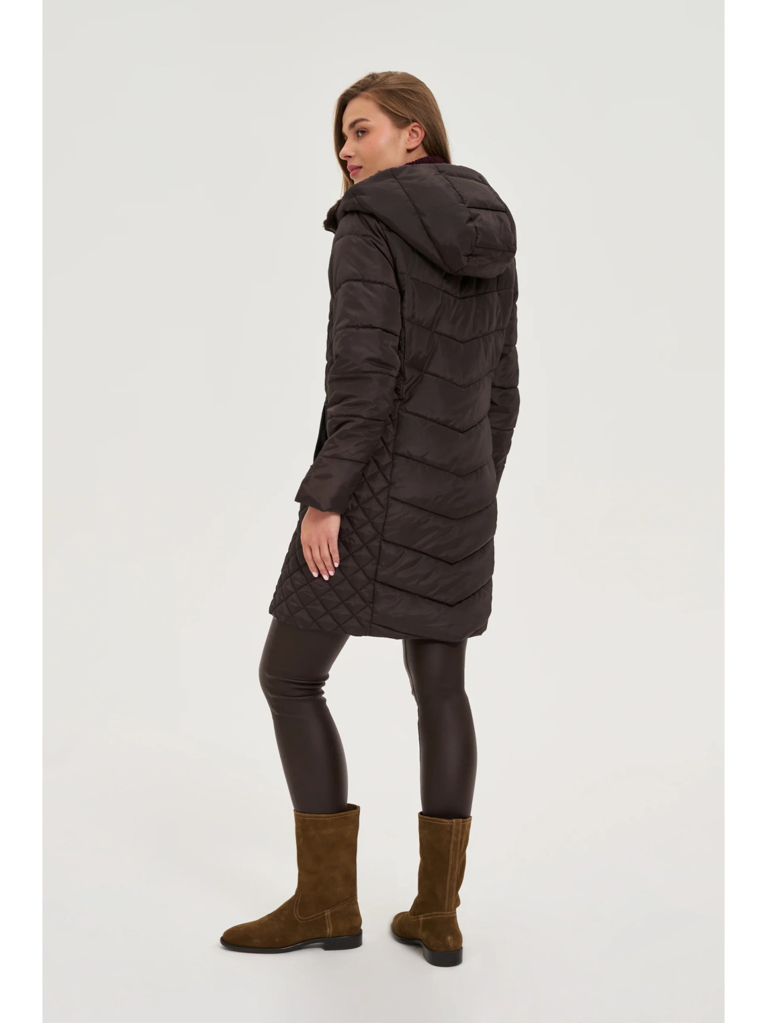 Jakna s prošivanom kapuljačom smeđa Moodo