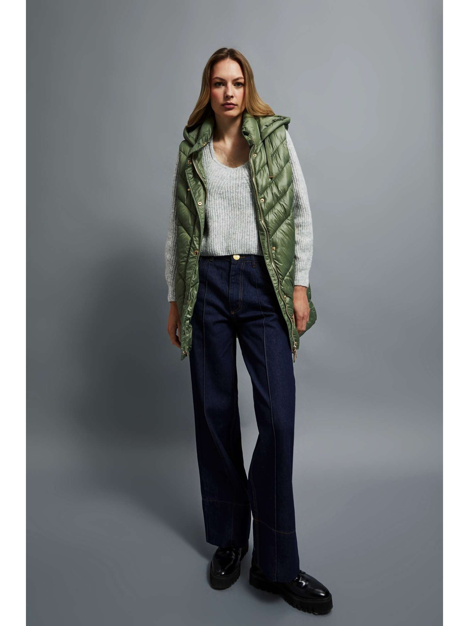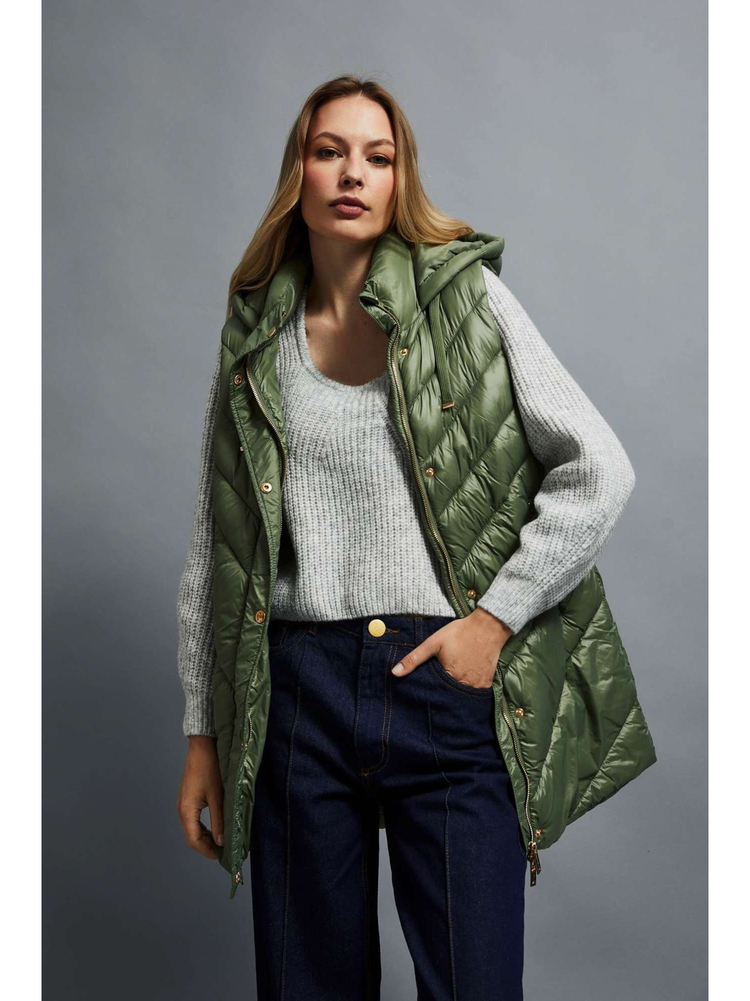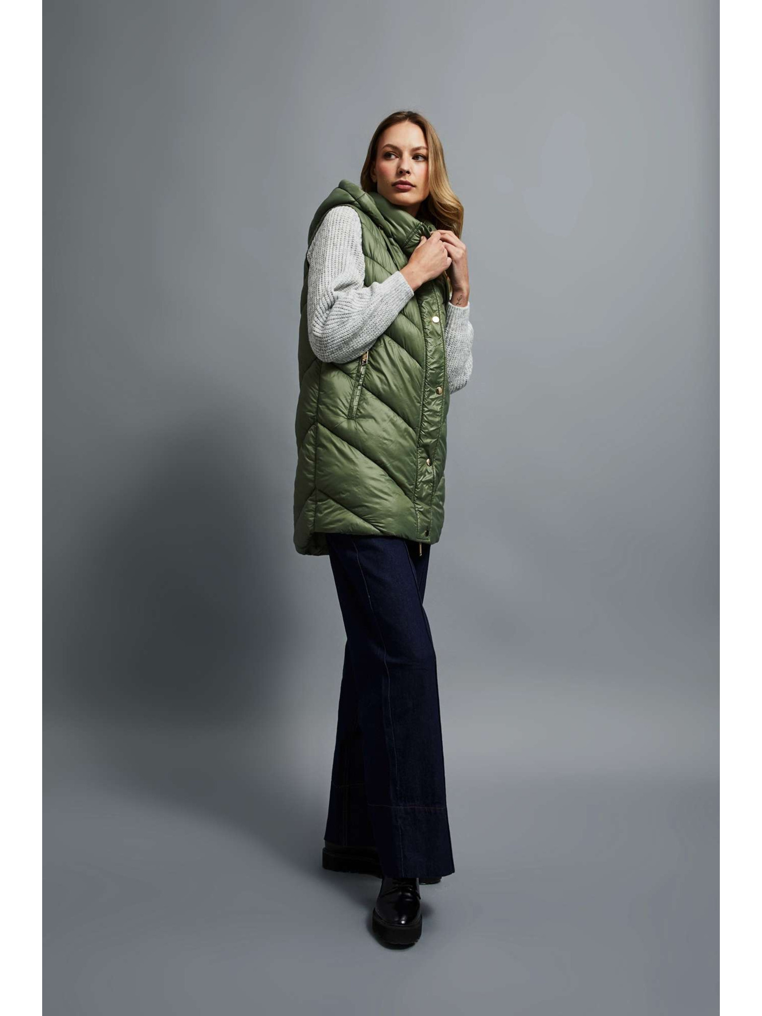 Kaki ženski dugi prošiveni prsluk ORSAY