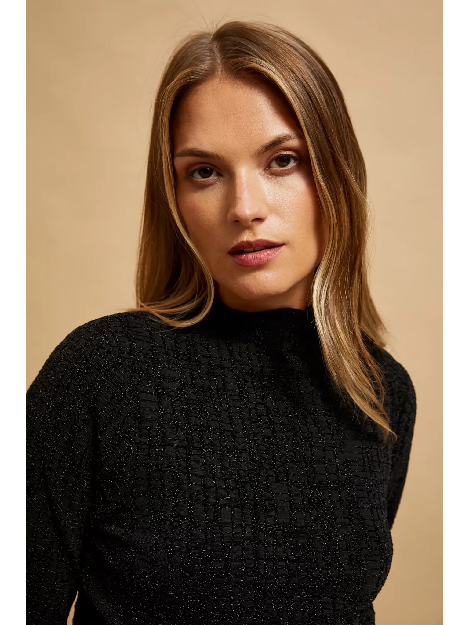 Crna bluza s polo-izrezom ukrašena metalnom niti Moodo