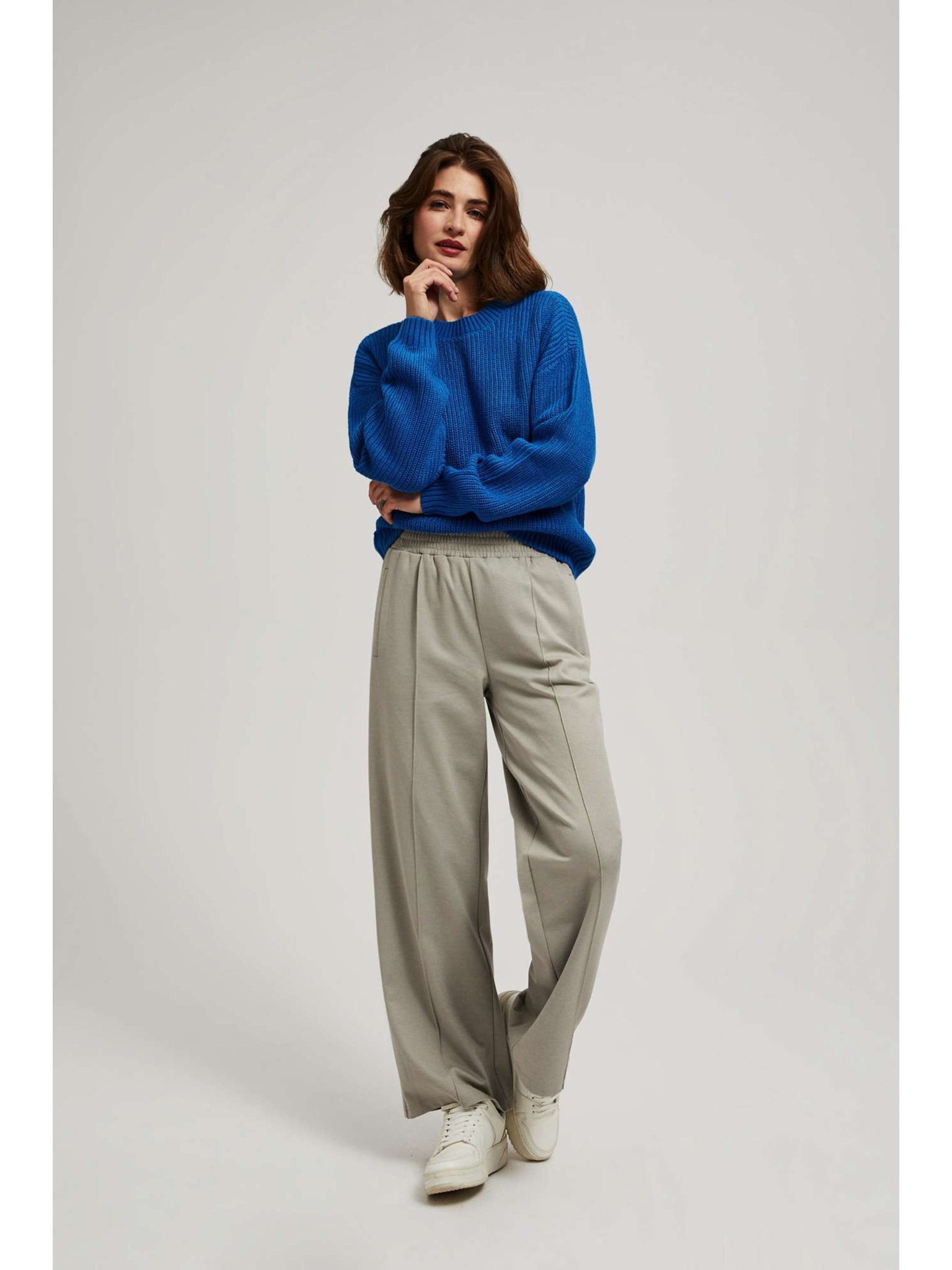 Smeđe hlače sa strukturom i širokim nogavicama Moodo
