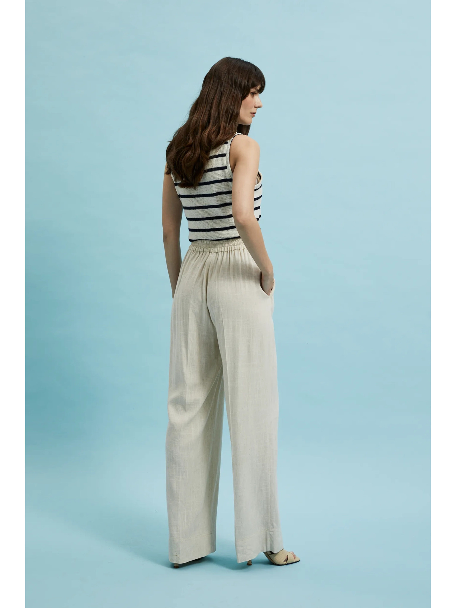 Palazzo hlače s visokim udjelom pamuka Marks & Spencer krem