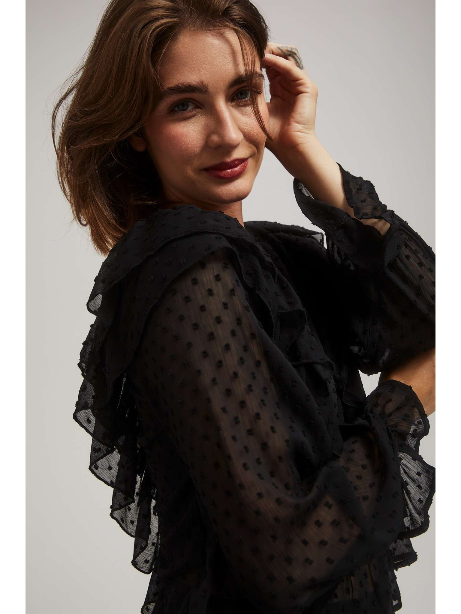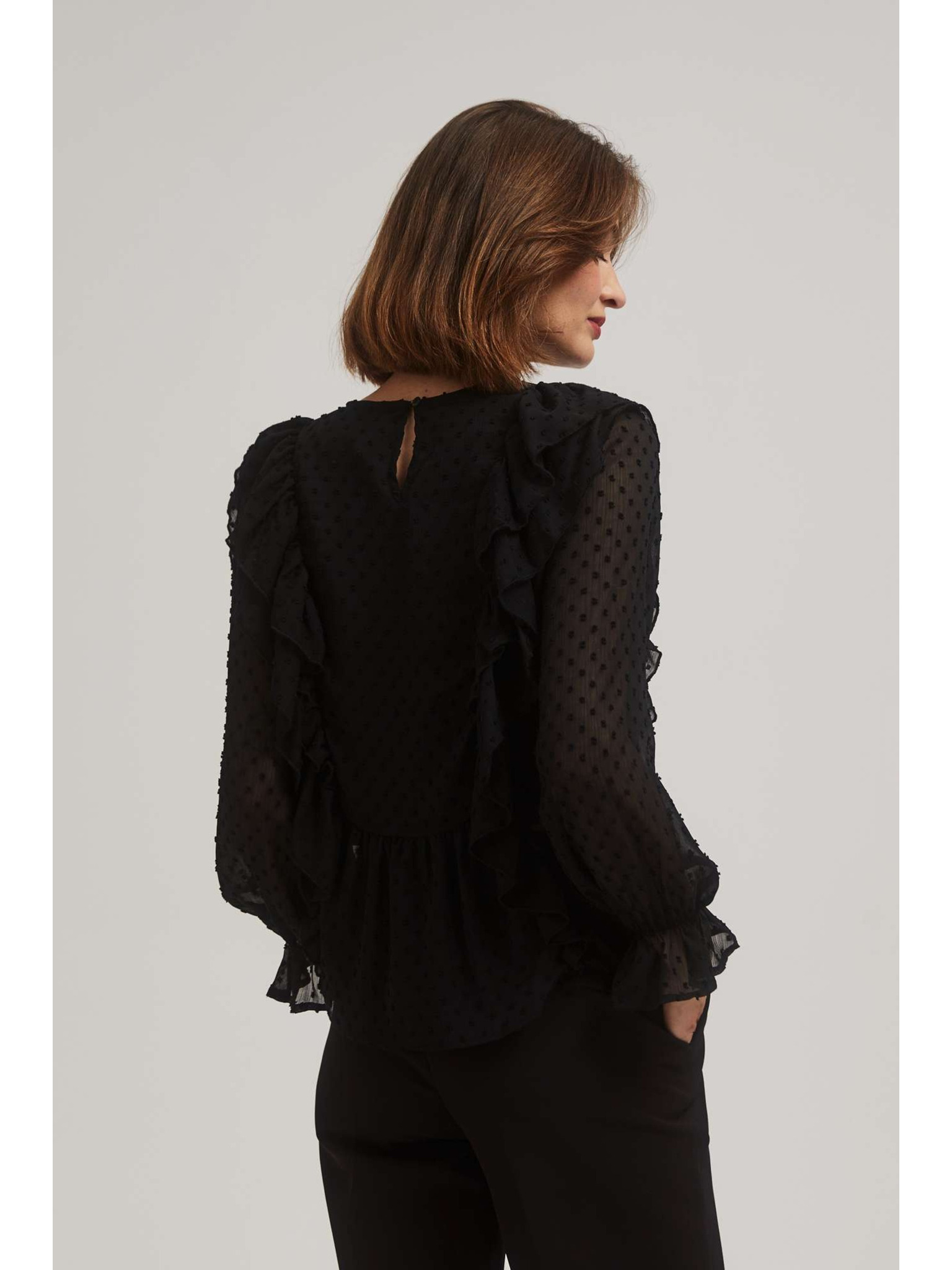 Crna košulja s volanima i dugim rukavima Moodo