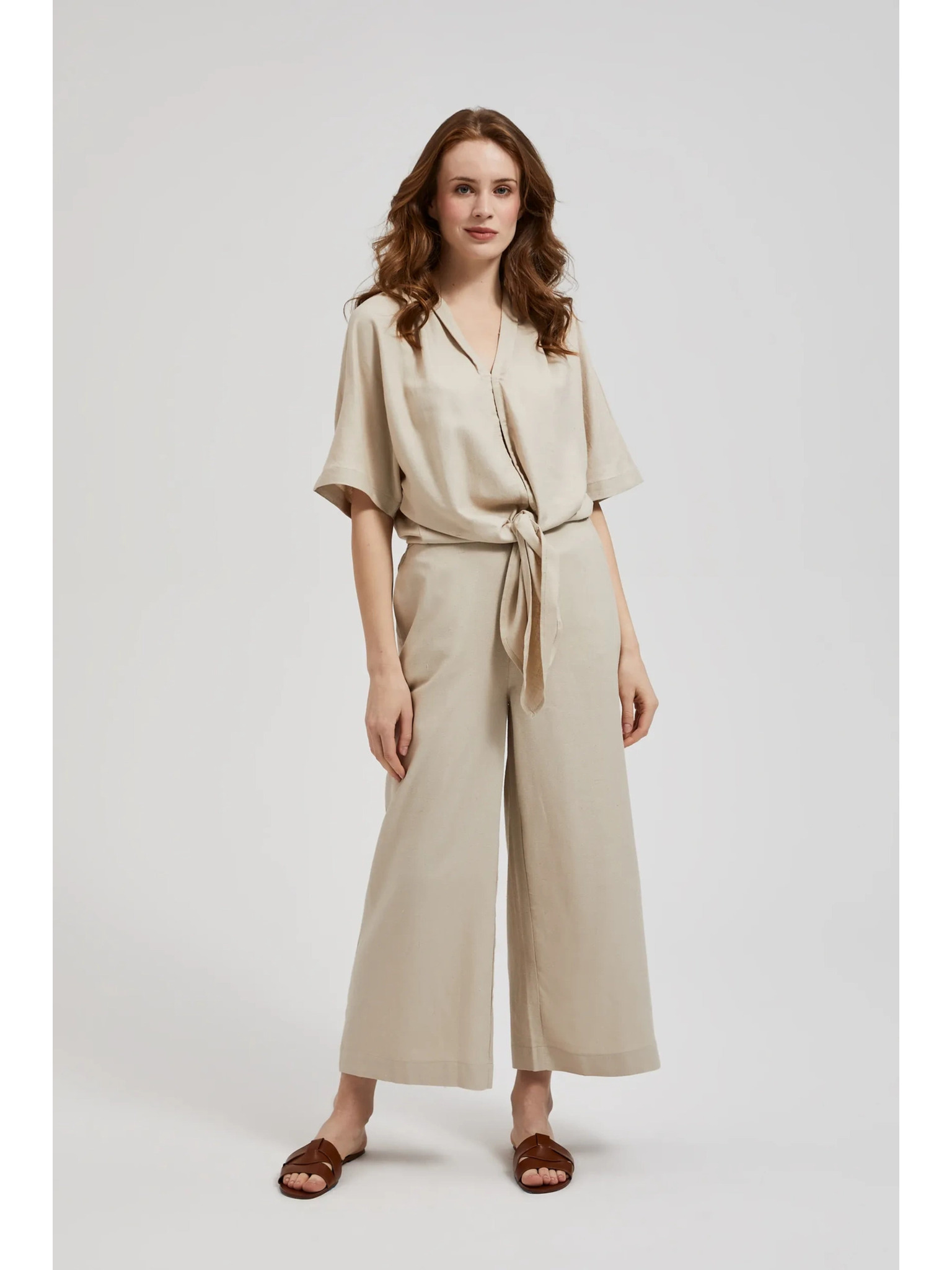 Bež ženska bluza s dugim rukavima i vezama marke Numoco