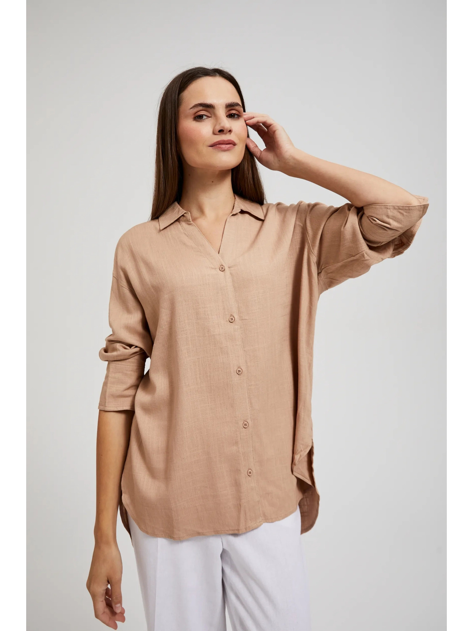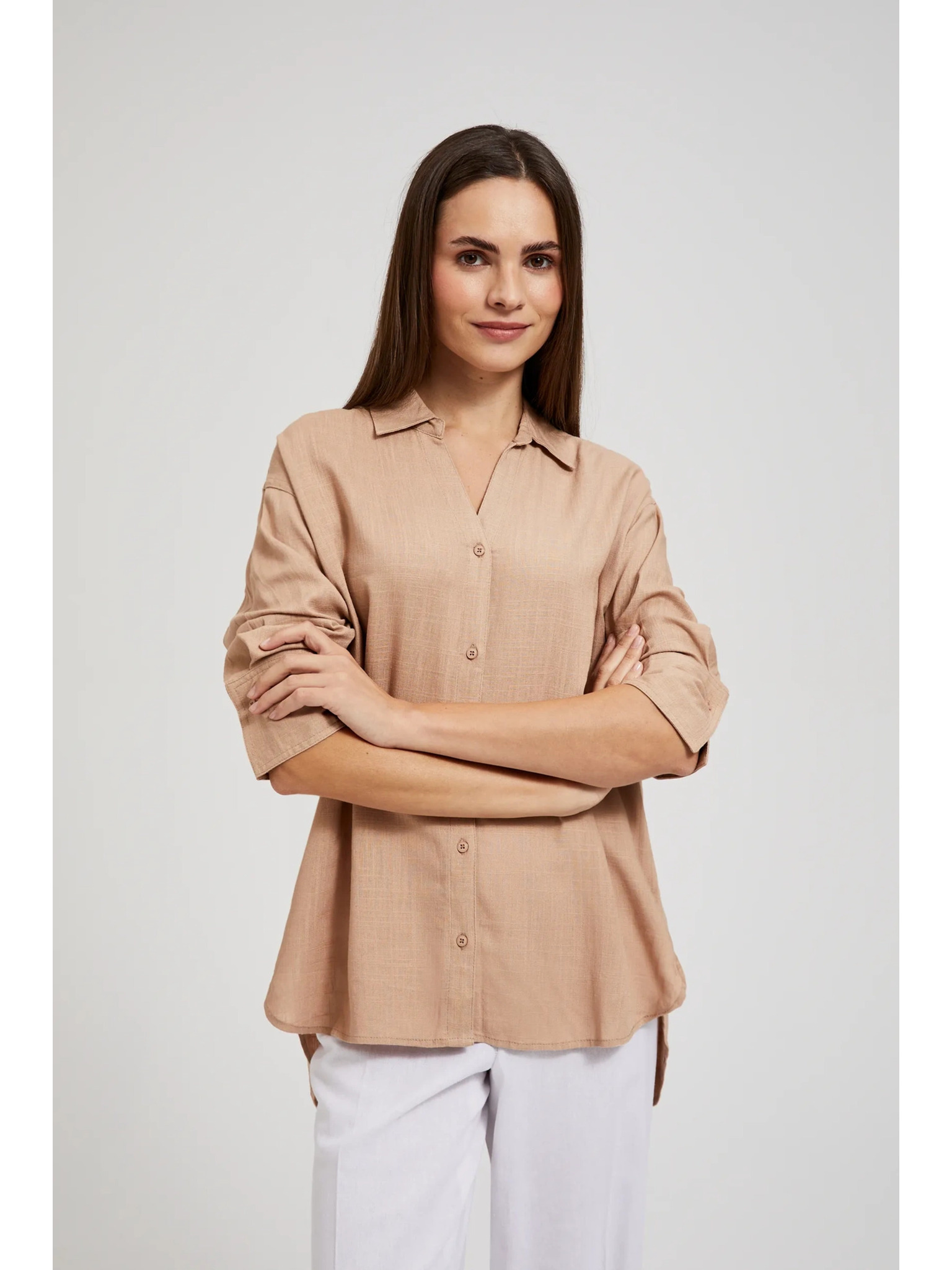 Numoco ženska bluza s dugim rukavima u smeđoj boji